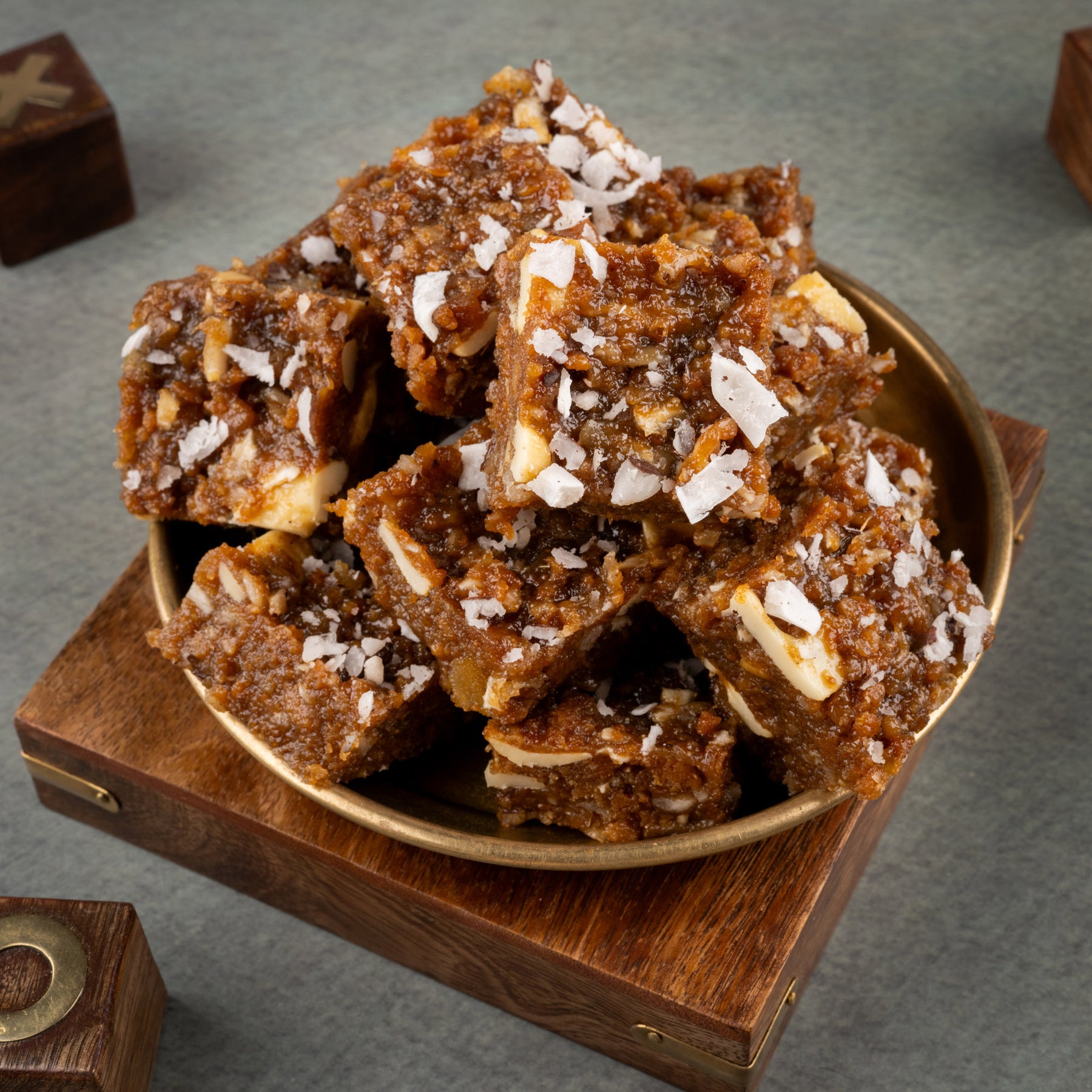 Gud Mishri Aata Patti Gud Cookies (280gm) – Wholesome whole wheat cookies, baked with pure butter and sweetened with gud for gentle, natural sweetness. Free from Maida, palm oil, margarine, and artificial colours, they bring you a clean and nutritious snack. With their light crunch and rich buttery flavour, these cookies are a perfect guilt-free treat for everyday snacking.