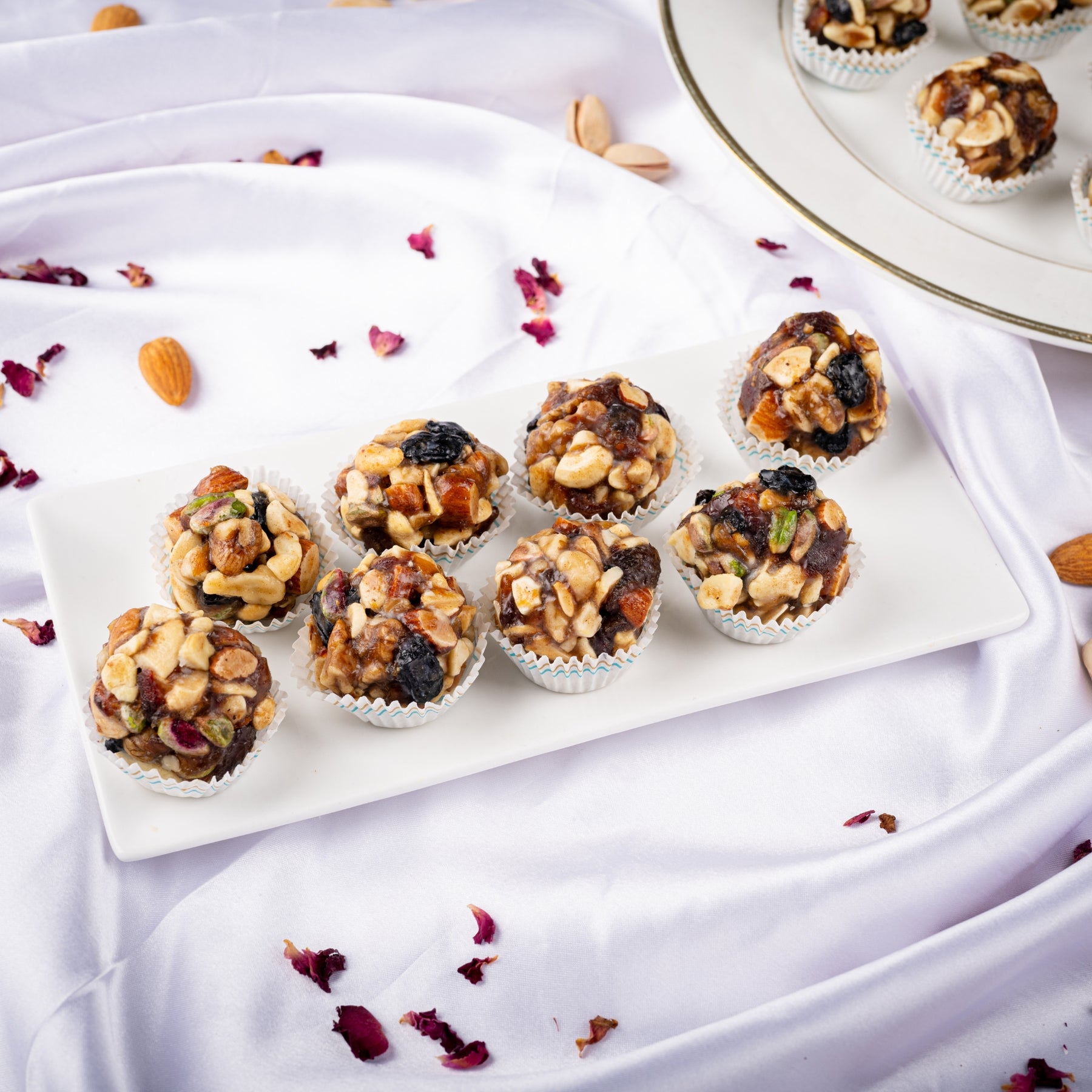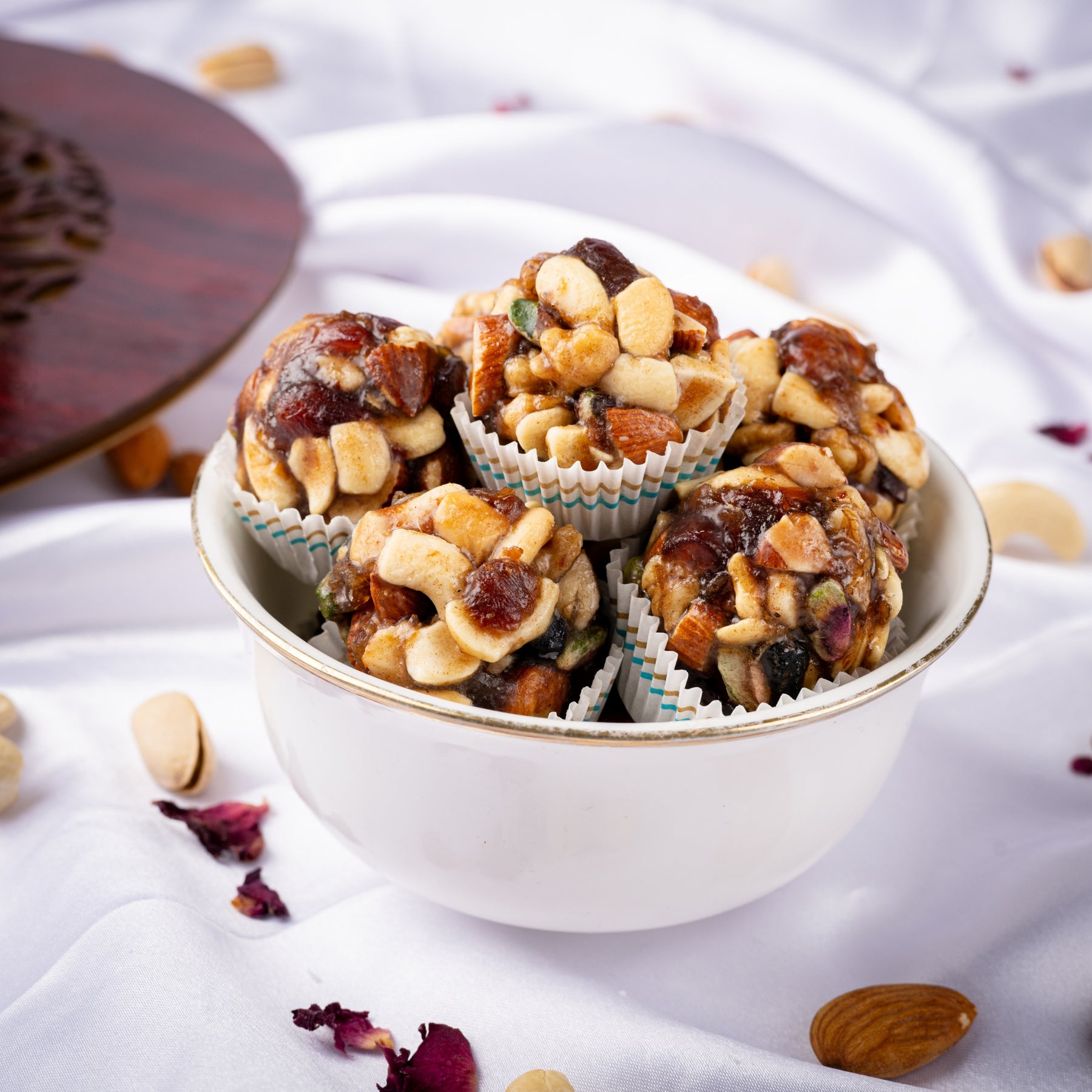 8Gud Mishri’s Honey Dry Fruit Laddu is a delicious, guilt-free indulgence that combines the rich flavors of Indian traditional sweets with a healthy twist. Sweetened with a perfect blend of natural Mishri and honey instead of refined sugar, this laddu is packed with the goodness of premium quality dry fruits. Free from artificial food colors, it offers an authentic and wholesome treat that preserves the true taste of tradition. Ideal for gifting during festivals or special occasions, Gud Mishri’s Honey Dry Fruit Laddu is the perfect choice for those seeking a nutritious, flavorful alternative.