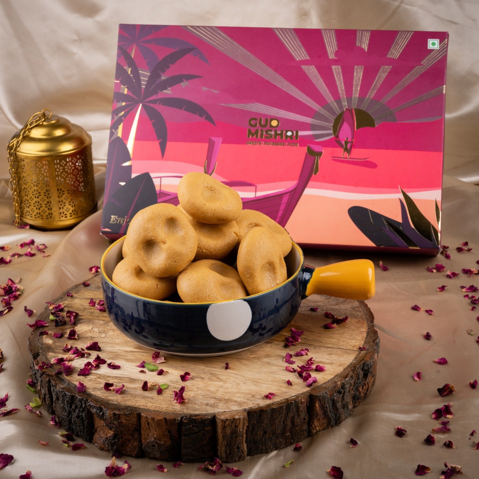 Gud Mishri’s Chirawa Peda Mishri is a delightful variation of Indian traditional sweets, offering a healthy and indulgent experience. Made with homemade khoya and sweetened with natural Mishri instead of refined sugar, this peda provides a guilt-free treat without compromising on taste. Crafted with premium ingredients and free from artificial food colors, it retains the authentic flavors while offering a wholesome option for sweet cravings. Ideal for gifting during festivals or special occasions, Gud Mishri’s Chirawa Peda Mishri is a healthier alternative to traditional sweets. Savor the taste of tradition in every bite!