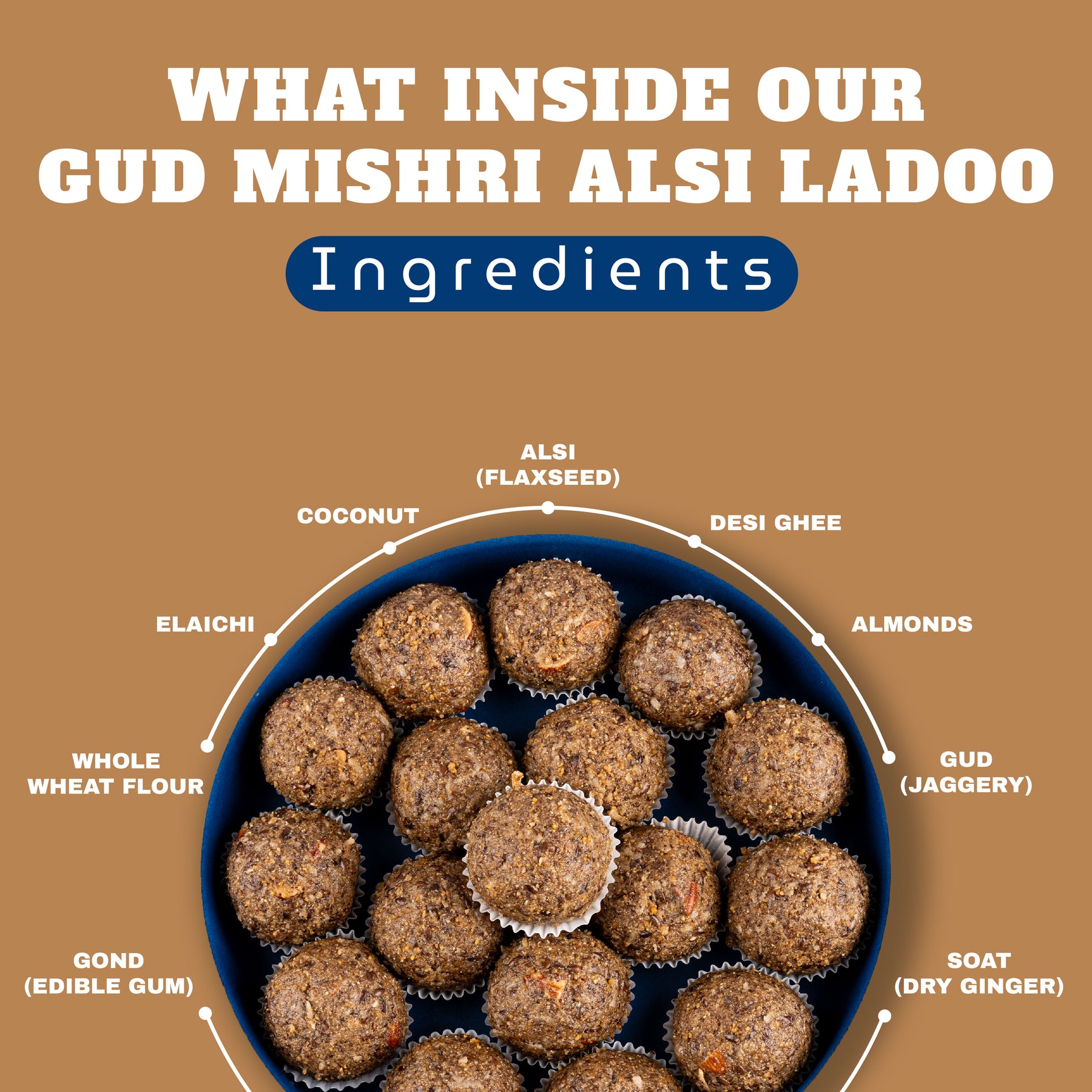 Alsi Laddu — A nourishing traditional delight crafted from flaxseeds (alsi), aata, gud, pure desi ghee, almonds, gond, and nariyal lachha, blended with the soothing aroma of elaichi. Each laddu is slow-roasted to perfection, locking in the natural oils and nutrition of flaxseeds while delivering a wholesome, earthy sweetness from jaggery. Rich in protein, fiber, and healthy fats, these laddus are known to boost energy, improve digestion, and provide warmth during winter. A delicious balance of taste and health — just pure, old-fashioned goodness in every bite.