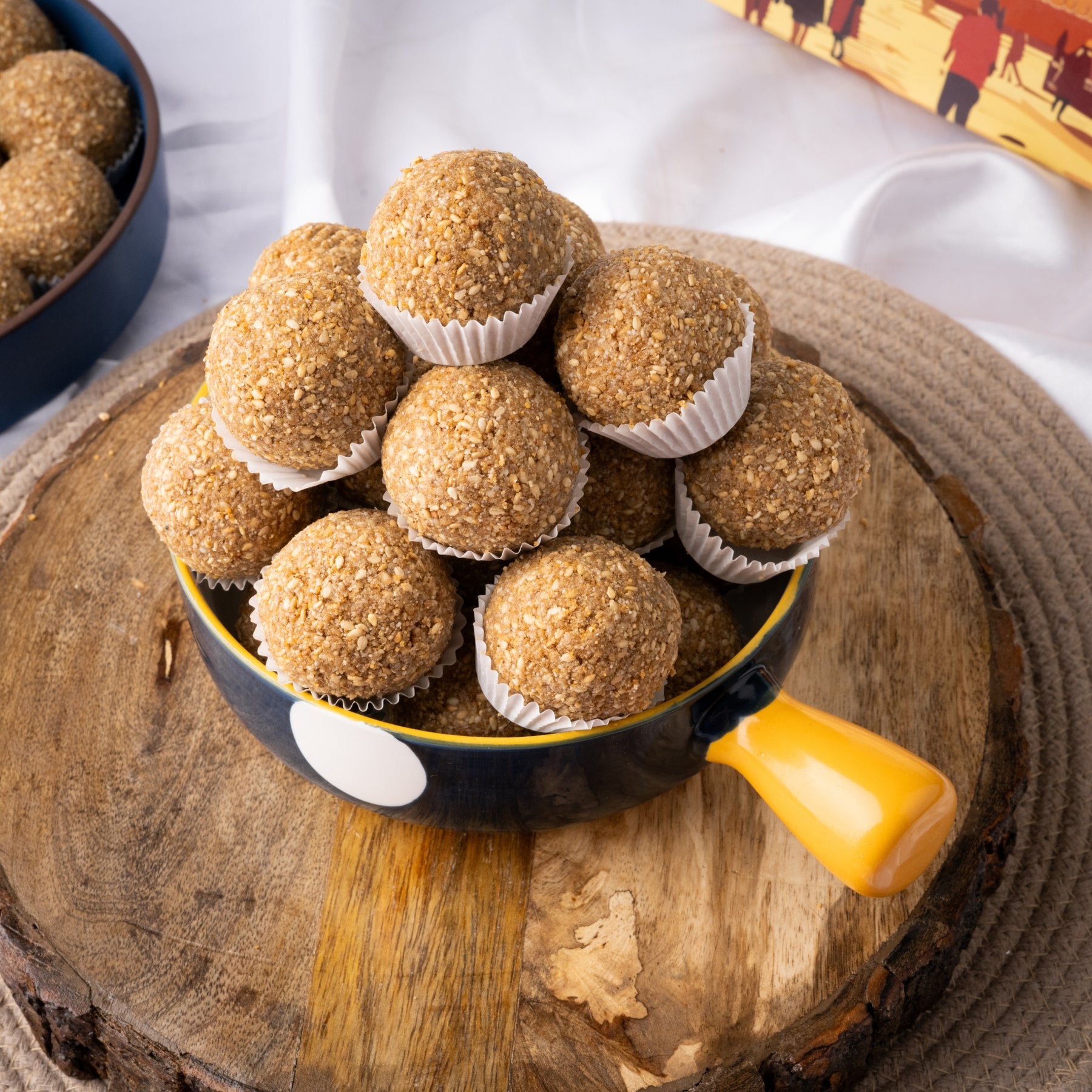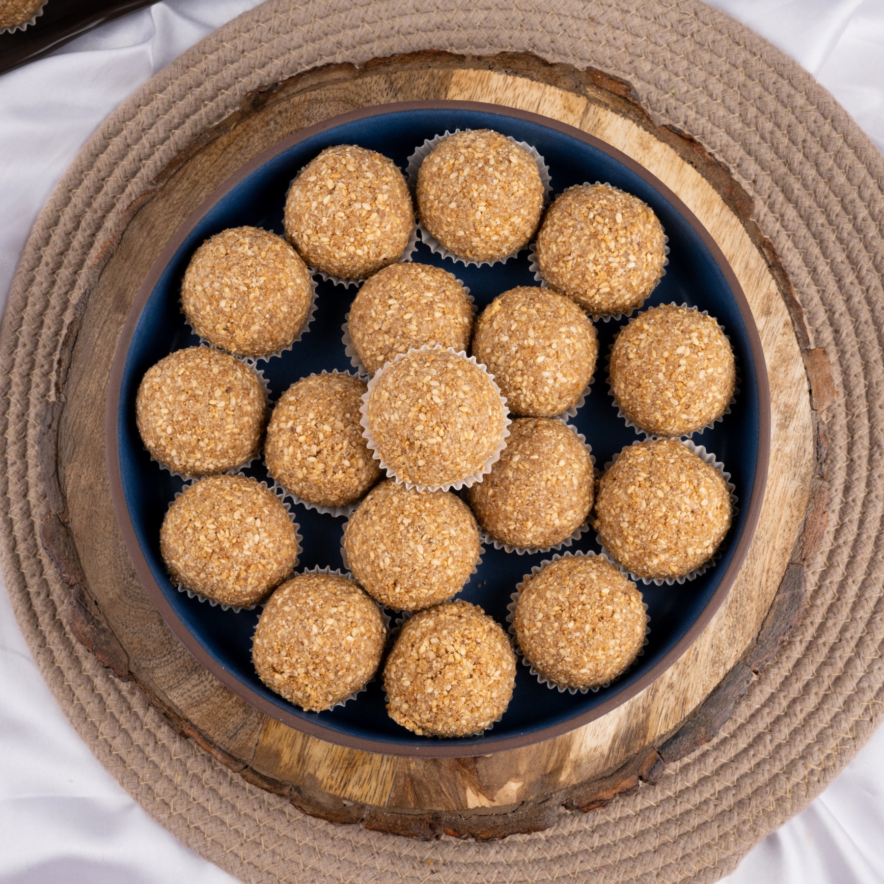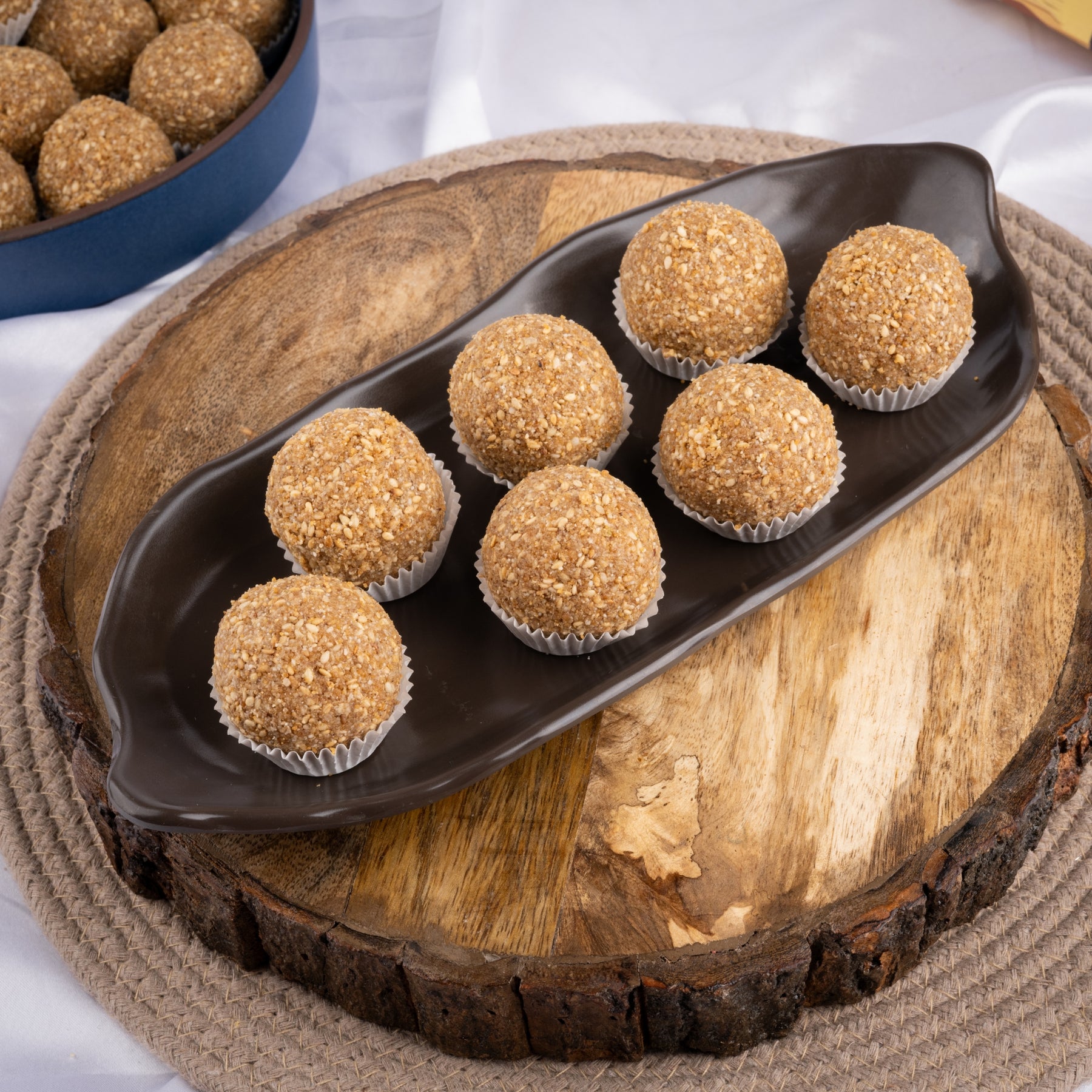 Till Gud Laddu — handcrafted with slow-roasted till, molten gud and pure ghee for that deep, earthy aroma and melt-in-mouth warmth. Every laddu brings the perfect balance of nuttiness and natural sweetness, giving you clean winter energy with no maida, no refined sugar — just wholesome, comforting bites made the traditional way.