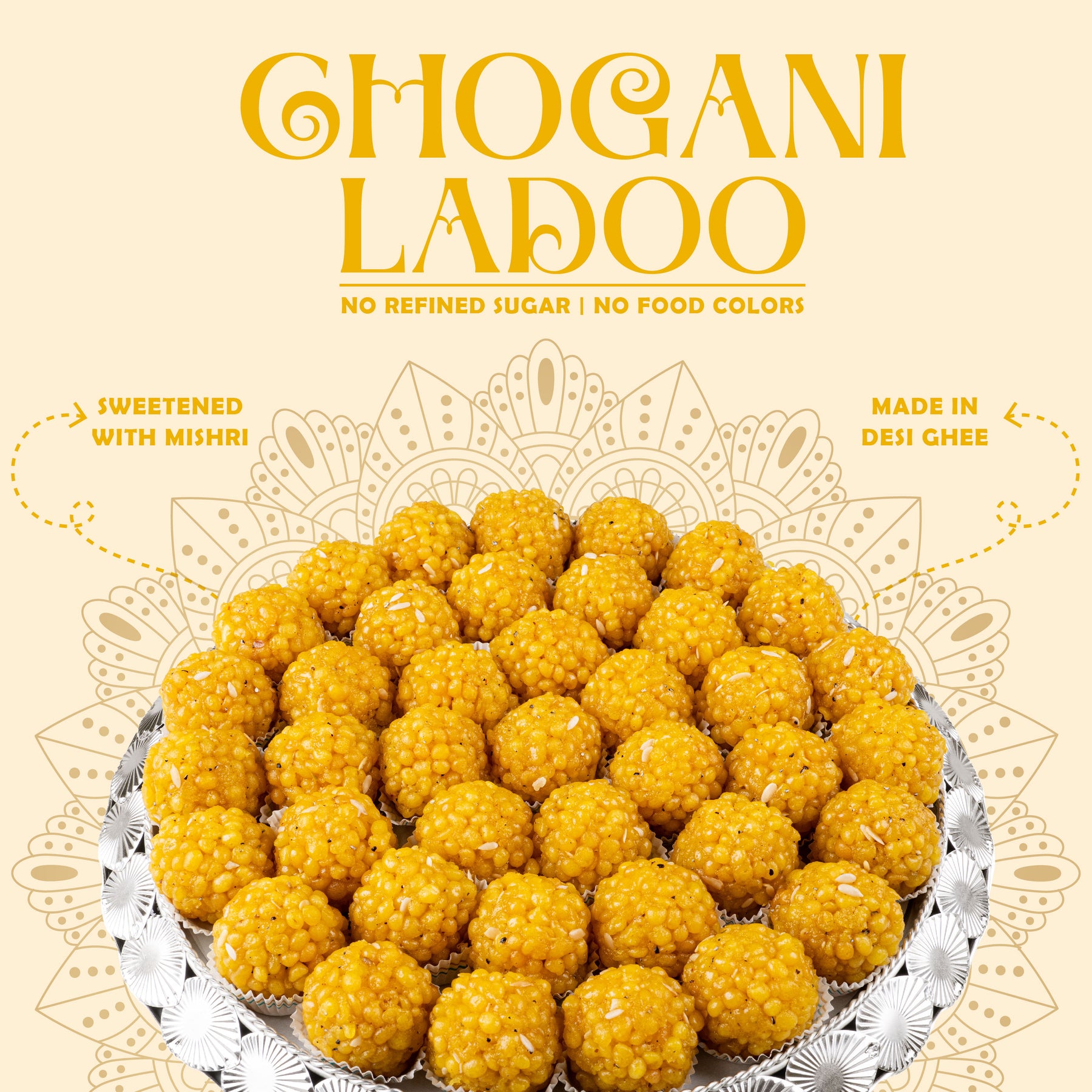 Our recipes are made only from premium natural ingredients, including whole-wheat and millet flours, jaggery, rock sugar, ghee, saffron, and butter.