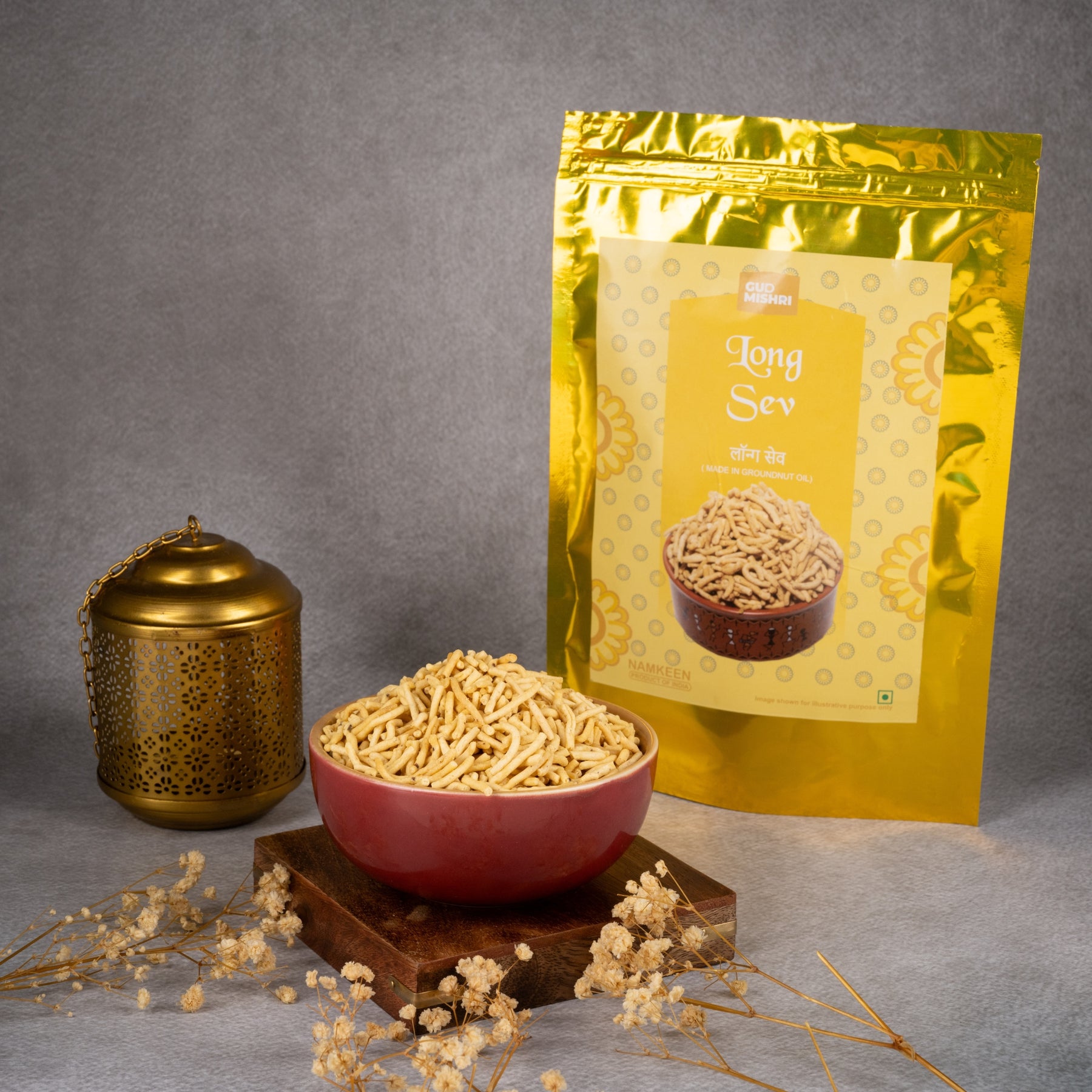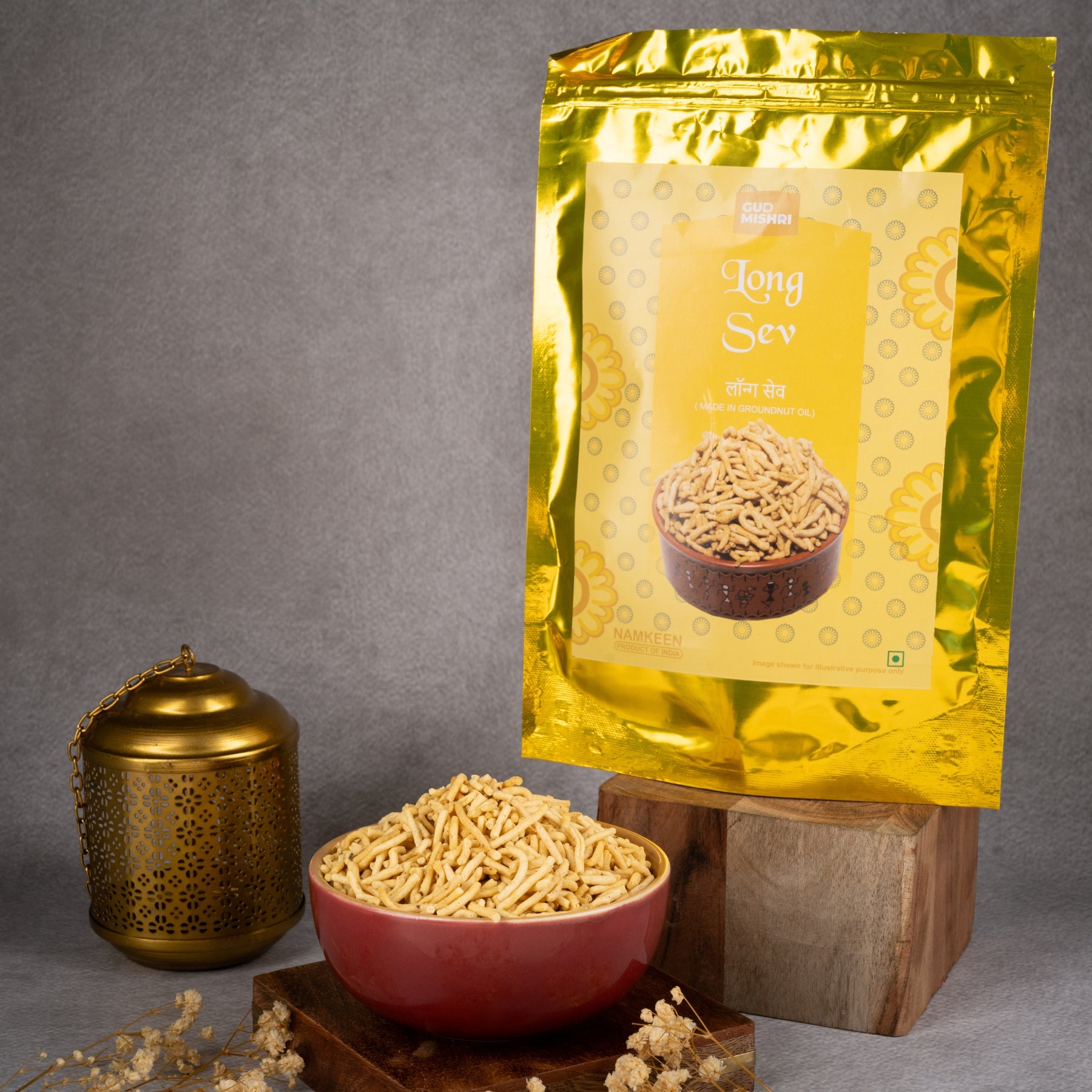 Gud Mishri Long Sev (400g) – Gud Mishri Long Sev is a crispy and aromatic snack made for everyday munching. Fried in pure groundnut oil, it offers a clean crunch in every bite without heaviness. Light, crisp, and easy to enjoy, this long sev is suitable for tea time, quick snacking, or use in chaat. Made with simple ingredients and a traditional process, it delivers a straightforward, satisfying snack experience with no unnecessary extras — just clean, crunchy bites you can enjoy anytime.