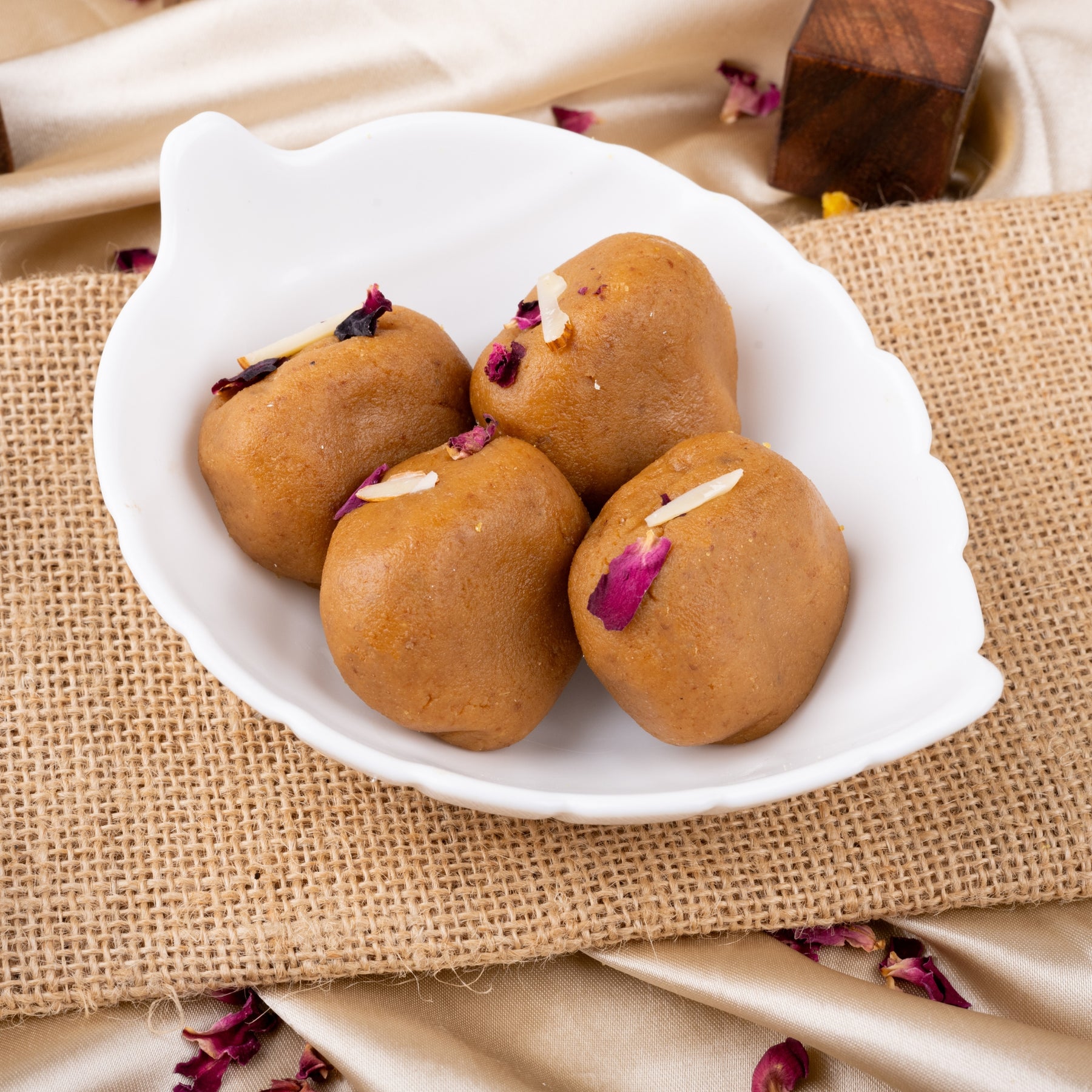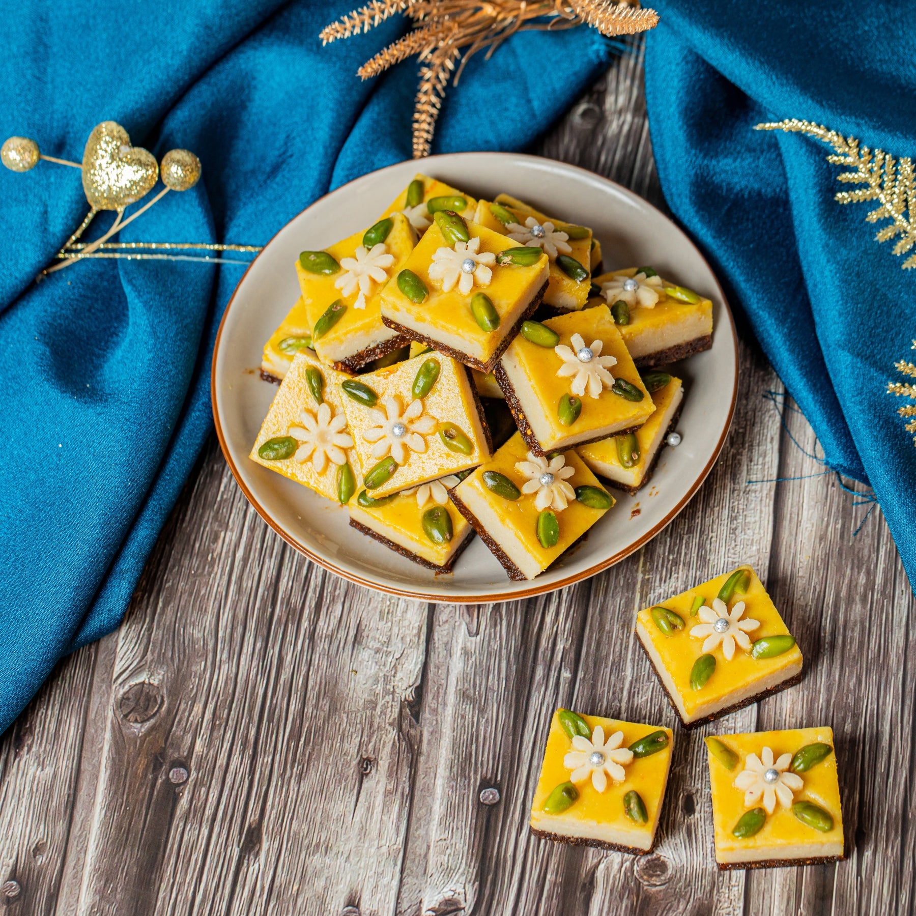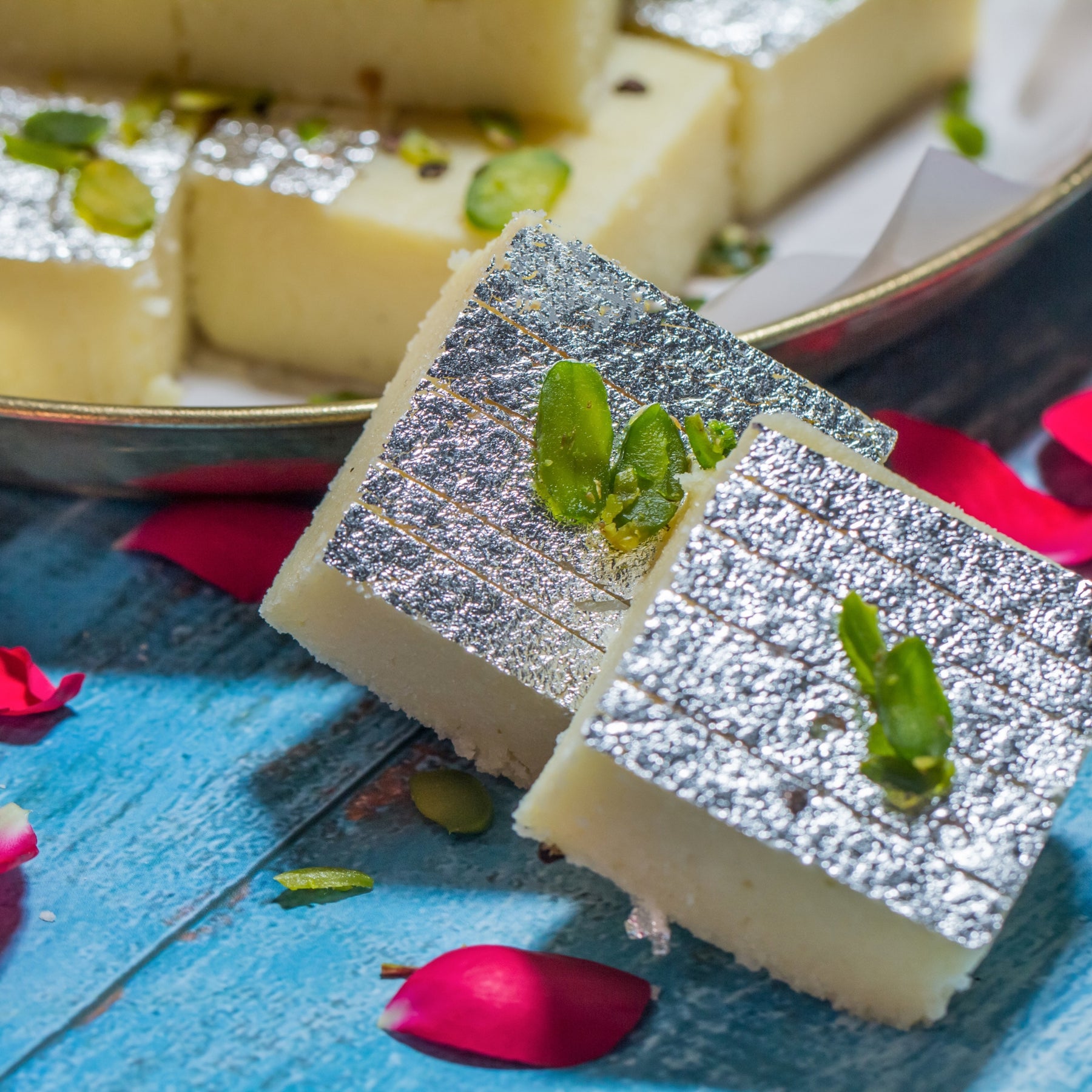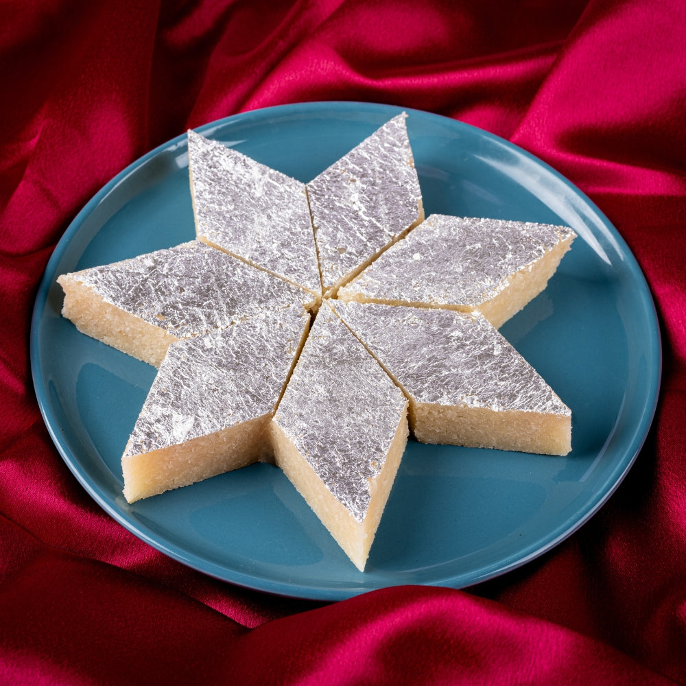 Kesar Badam Katli – A rich, saffron-infused delight made with premium almonds and the natural goodness of kesar. Free from refined sugar, milk powder, mawa, and artificial colors – just pure, golden indulgence in every bite.