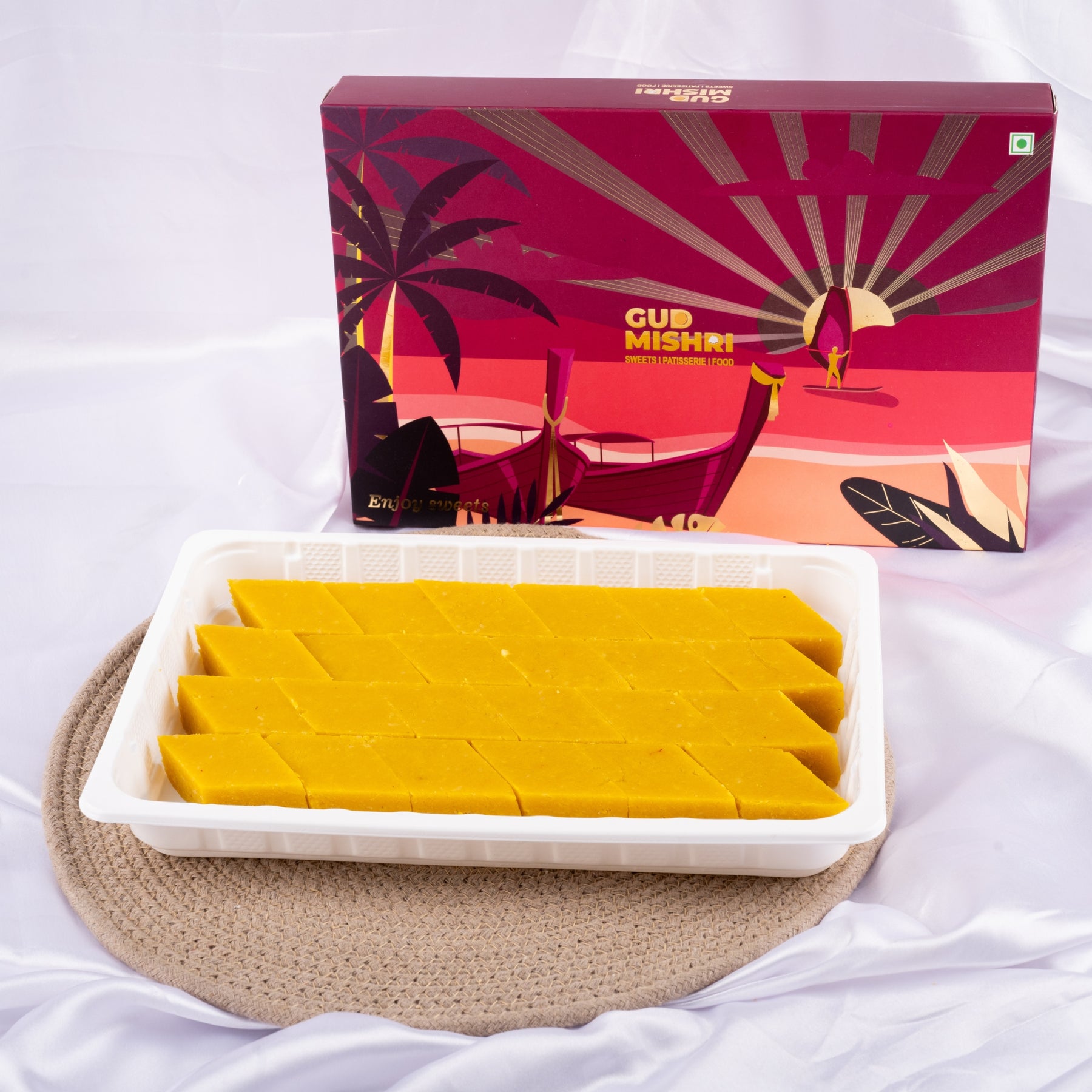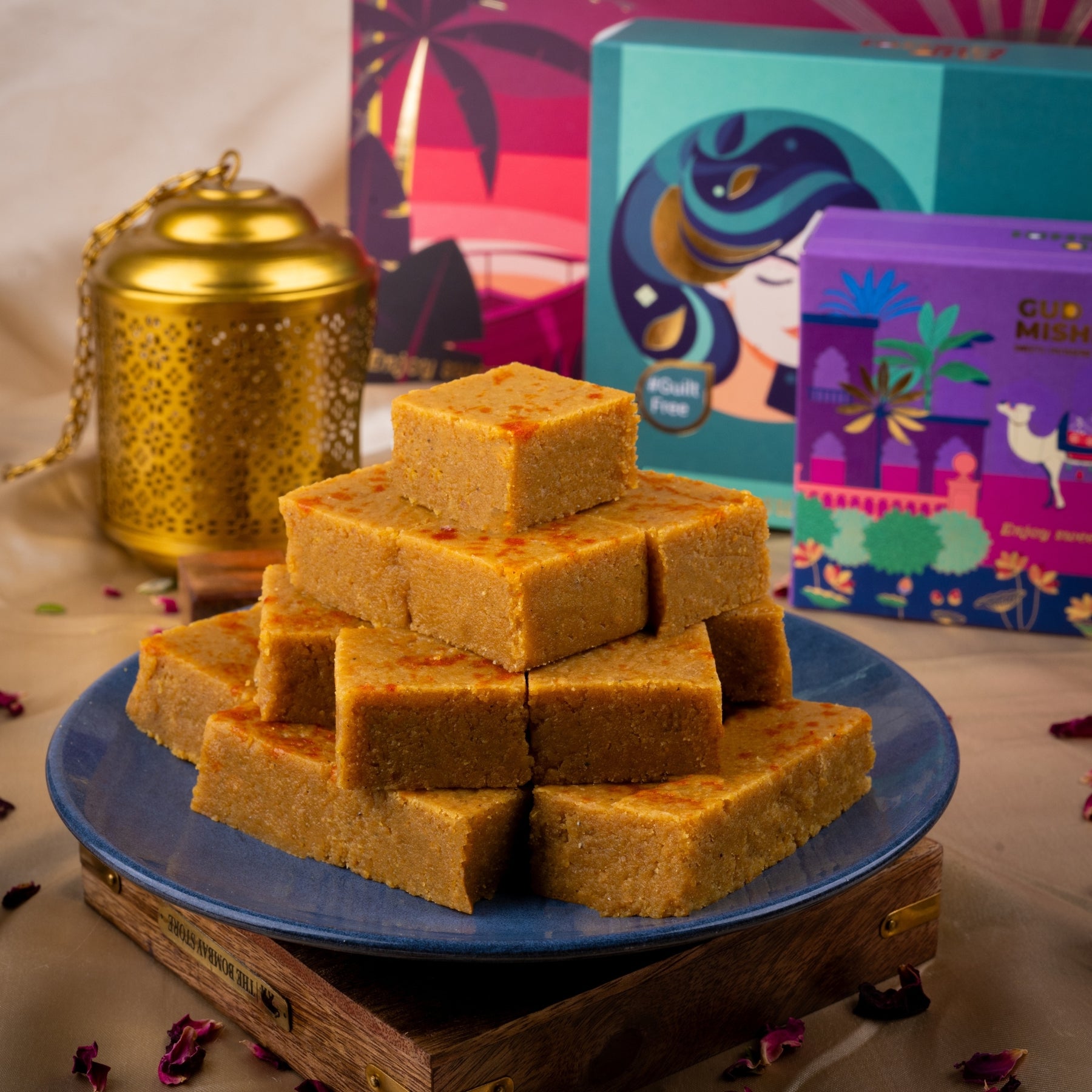 Gud Mishri’s Kesar Mawa Barfi is a luxurious take on classic Indian traditional sweets. Sweetened with natural Mishri instead of refined sugar and home made mawa, this barfi offers a guilt-free indulgence without compromising on flavor. Made with premium ingredients, including rich mawa and saffron, and free from artificial food colors, it delivers an authentic and pure taste of India. Perfect for gifting during festivals or special occasions, Gud Mishri’s Kesar Mawa Barfi is the ideal choice for those who want to enjoy delicious, healthier sweets. Experience the goodness of tradition with every bite!