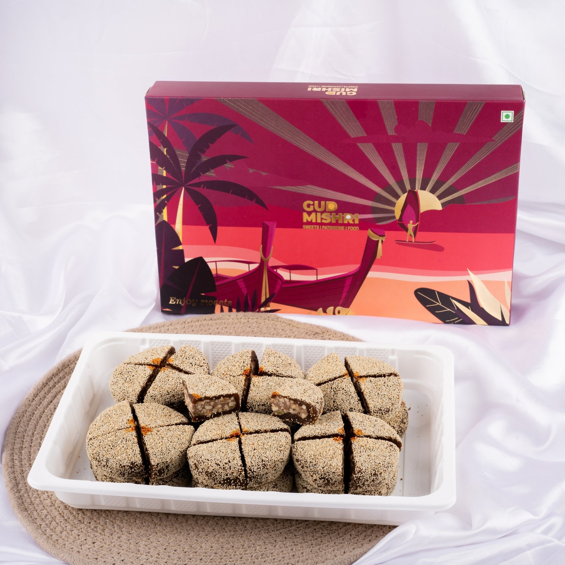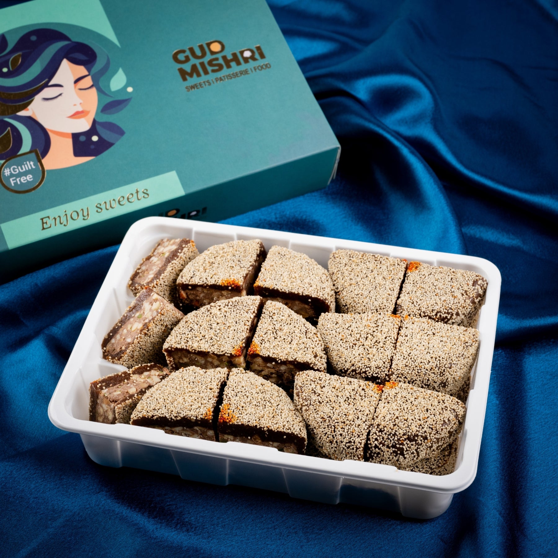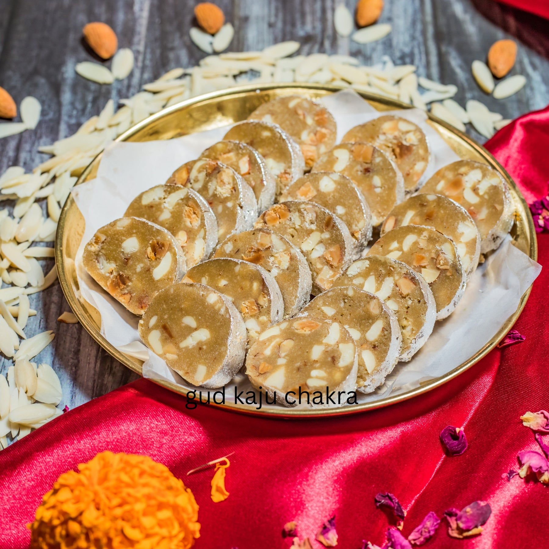 Gud Mishri’s Gud Chakra is a festive delight that brings the authentic flavors of Indian traditional sweets with a healthier twist. Sweetened with natural Gud (jaggery) instead of refined sugar, it offers a guilt-free indulgence. Made with premium dry fruits and high-quality ingredients, this treat is free from artificial food colors, ensuring a pure and wholesome experience. Perfect for gifting during Indian festivals or special occasions, Gud Chakra provides a nourishing and delicious alternative to conventional sweets. Celebrate the spirit of tradition with every bite of this healthy, festive treat! .