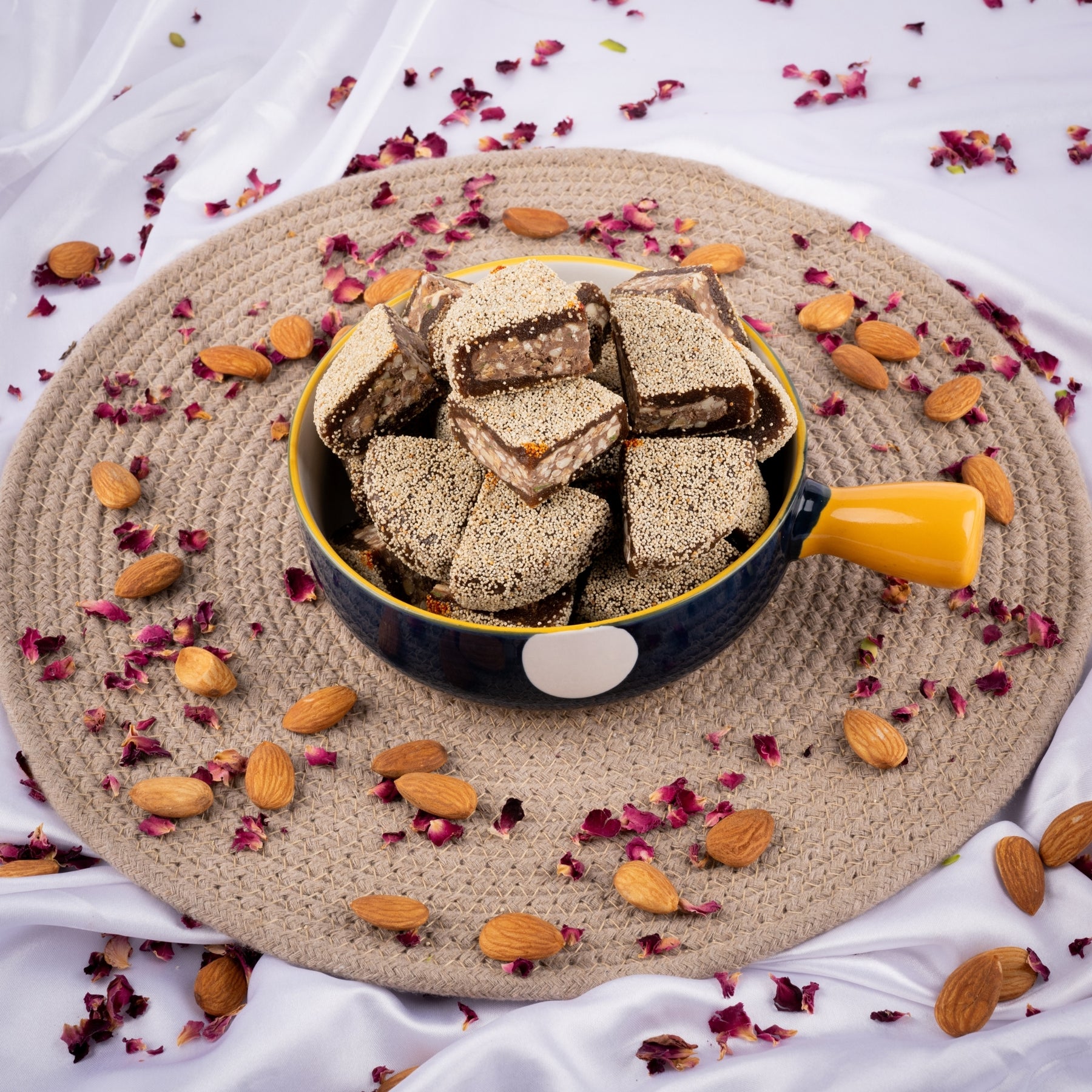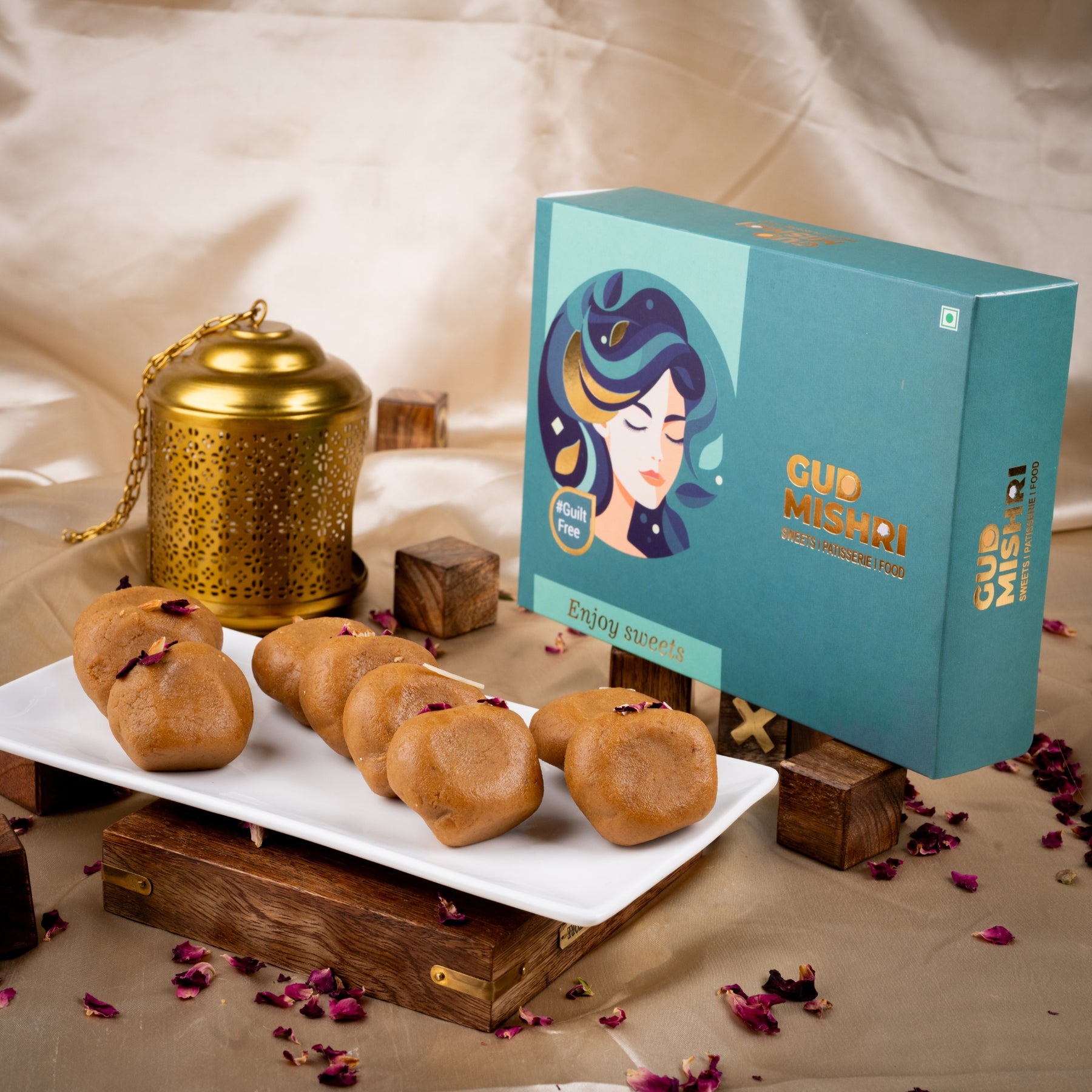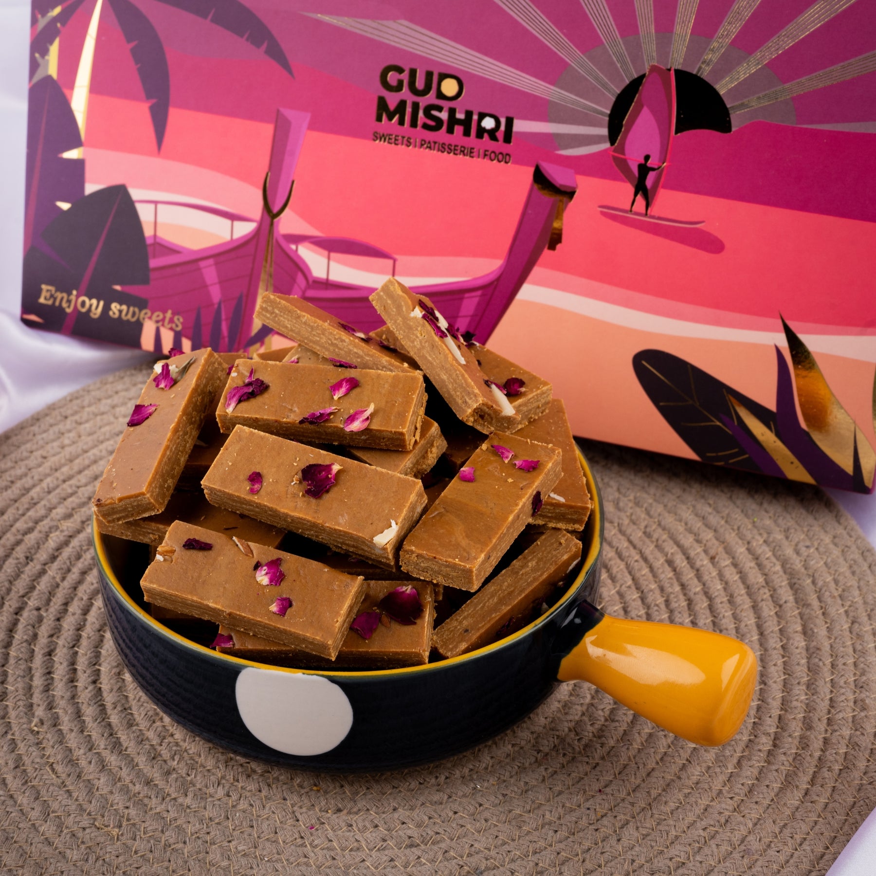 Gud Mishri’s Gud Chakra is a festive delight that brings the authentic flavors of Indian traditional sweets with a healthier twist. Sweetened with natural Gud (jaggery) instead of refined sugar, it offers a guilt-free indulgence. Made with premium dry fruits and high-quality ingredients, this treat is free from artificial food colors, ensuring a pure and wholesome experience. Perfect for gifting during Indian festivals or special occasions, Gud Chakra provides a nourishing and delicious alternative to conventional sweets. Celebrate the spirit of tradition with every bite of this healthy, festive treat! .