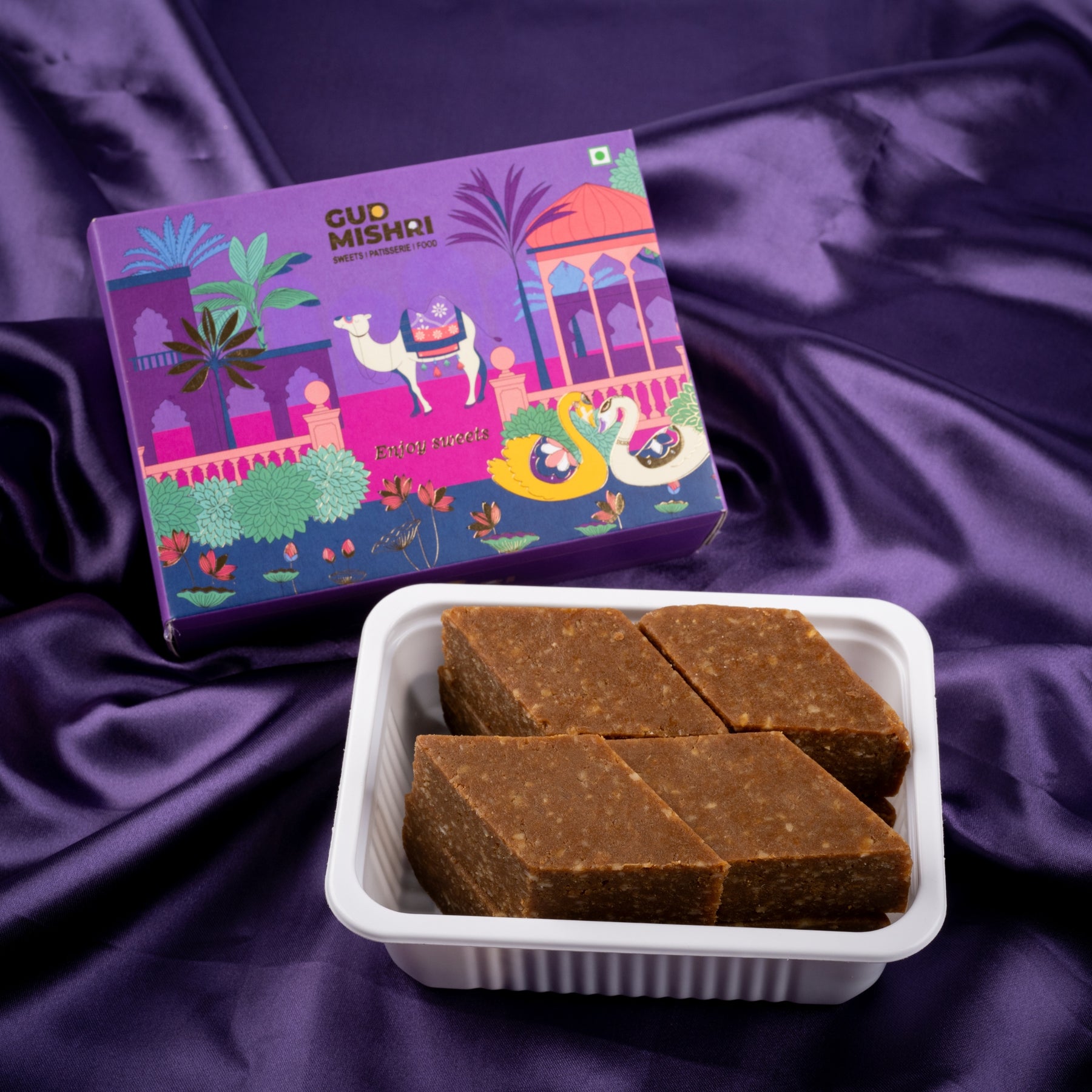 Gud Mishri's Gud Milk Cake is a delightful twist on a traditional Indian treat. Made with premium homemade mawa and sweetened with Gud (jaggery) instead of refined sugar, this milk cake offers a rich, authentic taste without compromising on health. Free from artificial food colors, it’s crafted with the finest ingredients, ensuring a guilt-free indulgence. Ideal for gifting during festivals or special occasions, Gud Mishri’s Gud Milk Cake lets you enjoy the classic flavors of Indian mawa sweets in a healthier, natural form. Savor the essence of tradition with every bite!