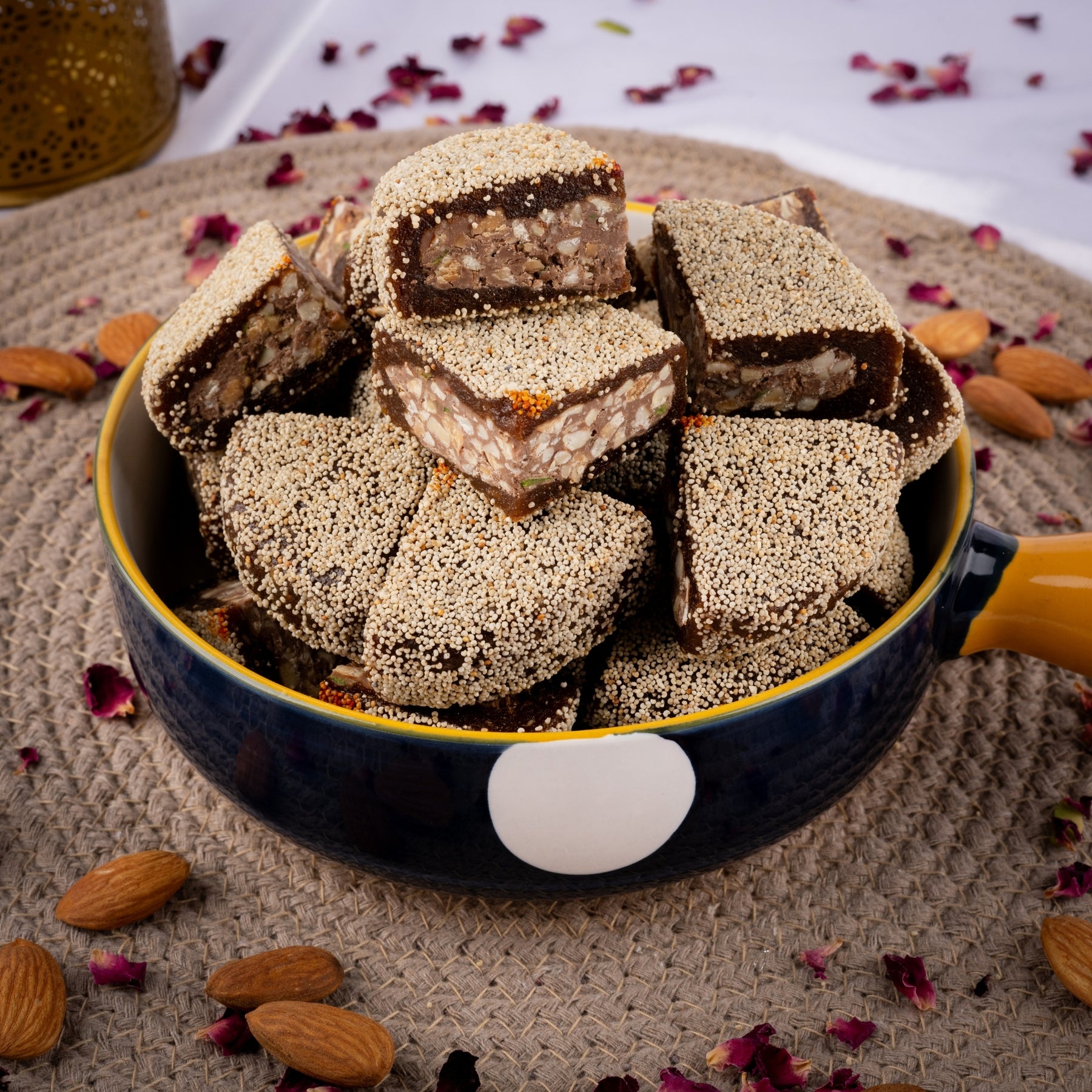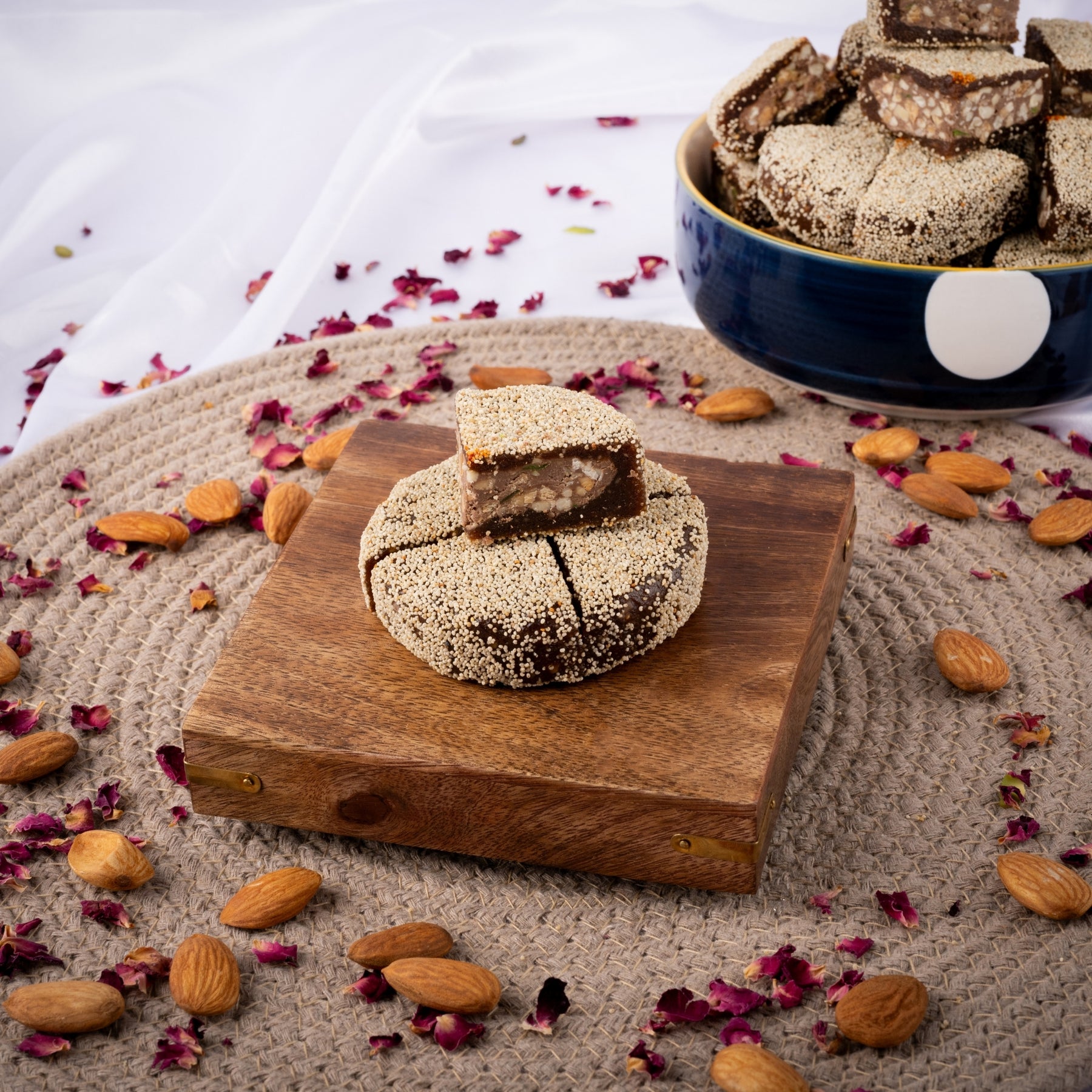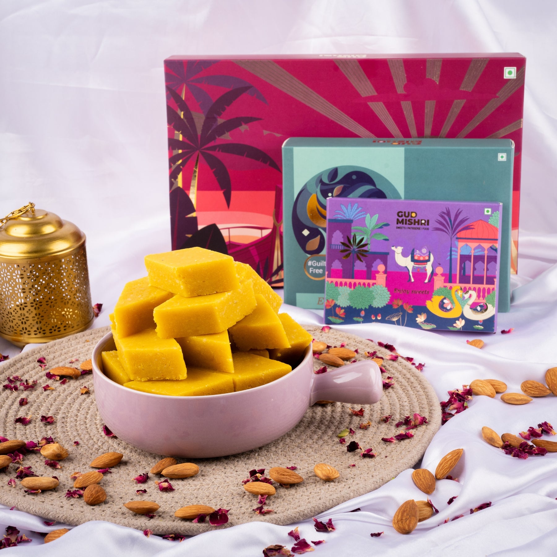 Gud Badam Katli – A healthier twist on the classic sweet, made with premium almonds and the natural sweetness of gud. No refined sugar, milk powder, mawa, or artificial colors – just pure, nutritious indulgence in every bite.
