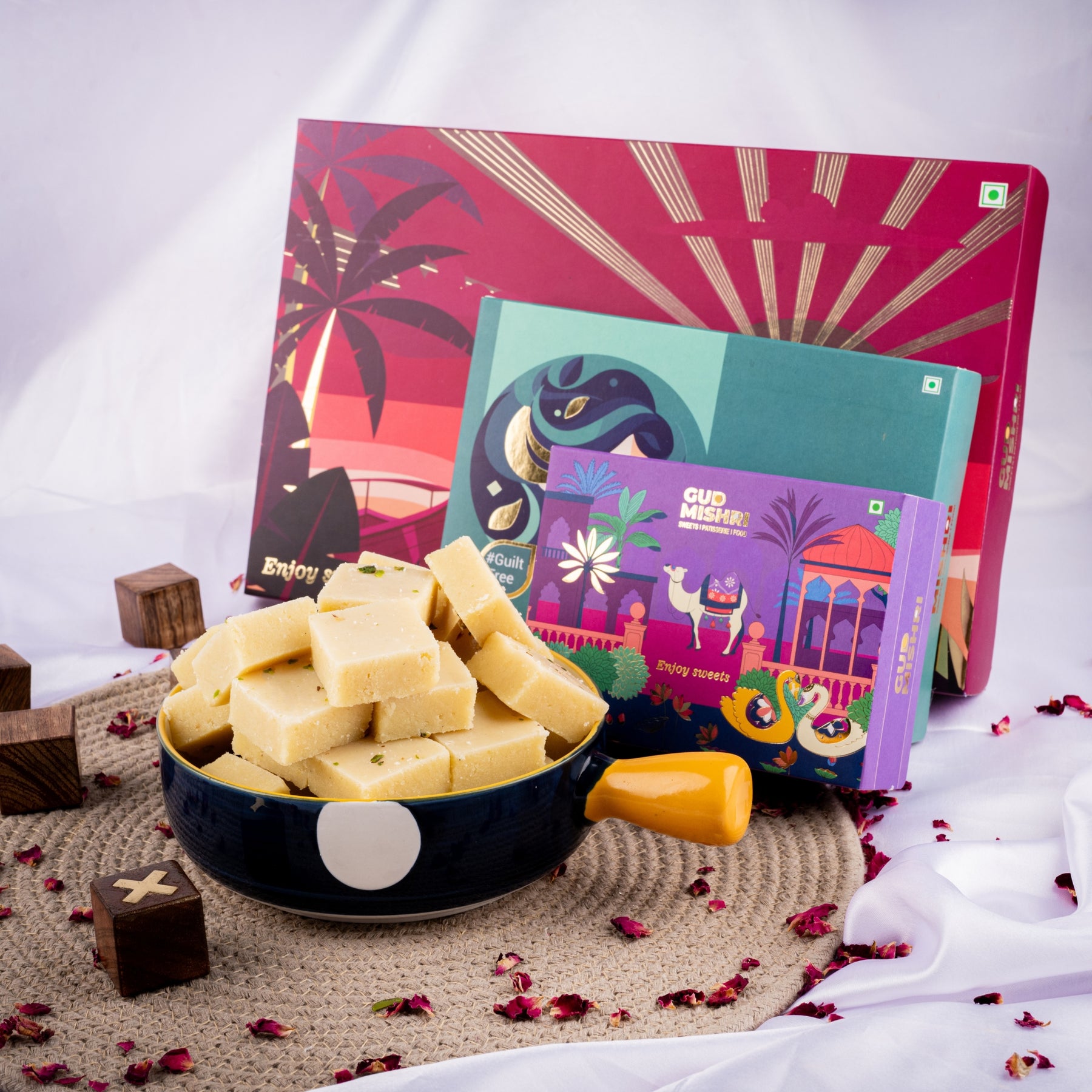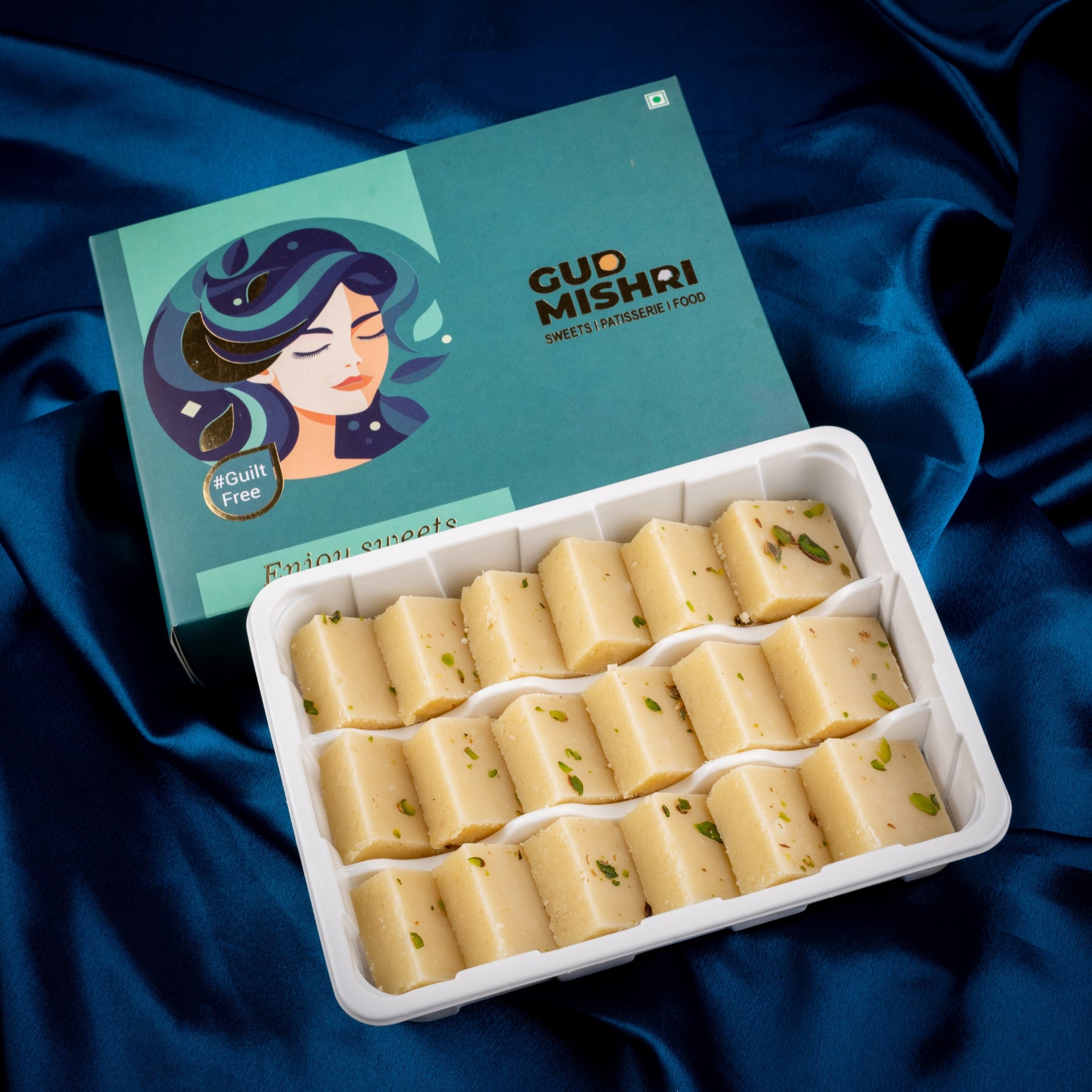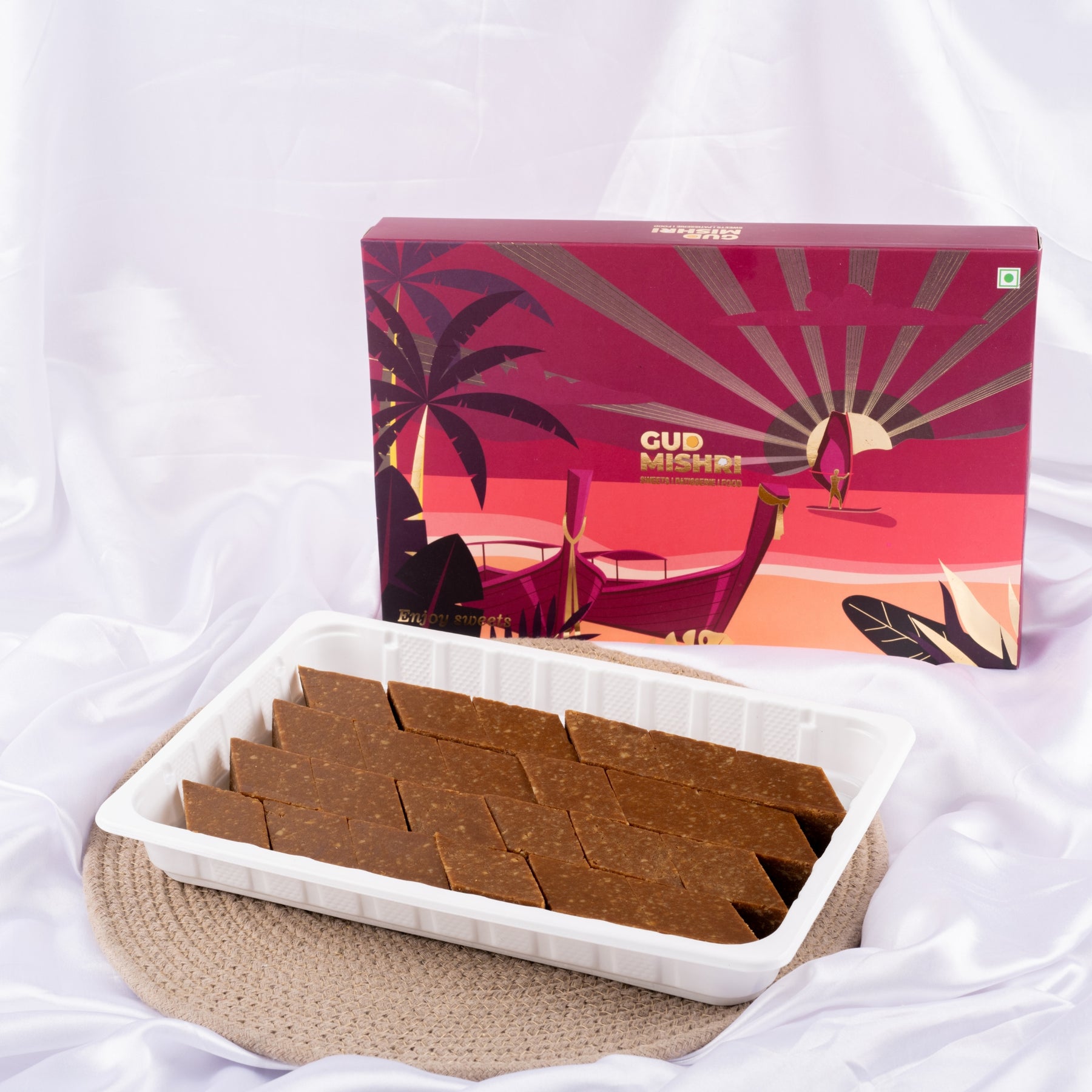 Gud Mishri’s Bikaneri Barfi brings the essence of traditional Indian sweets with a modern, healthier twist. Sweetened naturally with Mishri instead of refined sugar, this barfi offers a guilt-free indulgence that’s perfect for those seeking a wholesome treat. Made with premium ingredients and free from artificial food colors, it’s a pure and authentic delight in every bite. Ideal for gifting during festivals or special occasions, Gud Mishri’s Bikaneri Barfi combines the richness of Indian tradition with health-conscious choices. Enjoy the best of both worlds with this premium, delicious sweet!