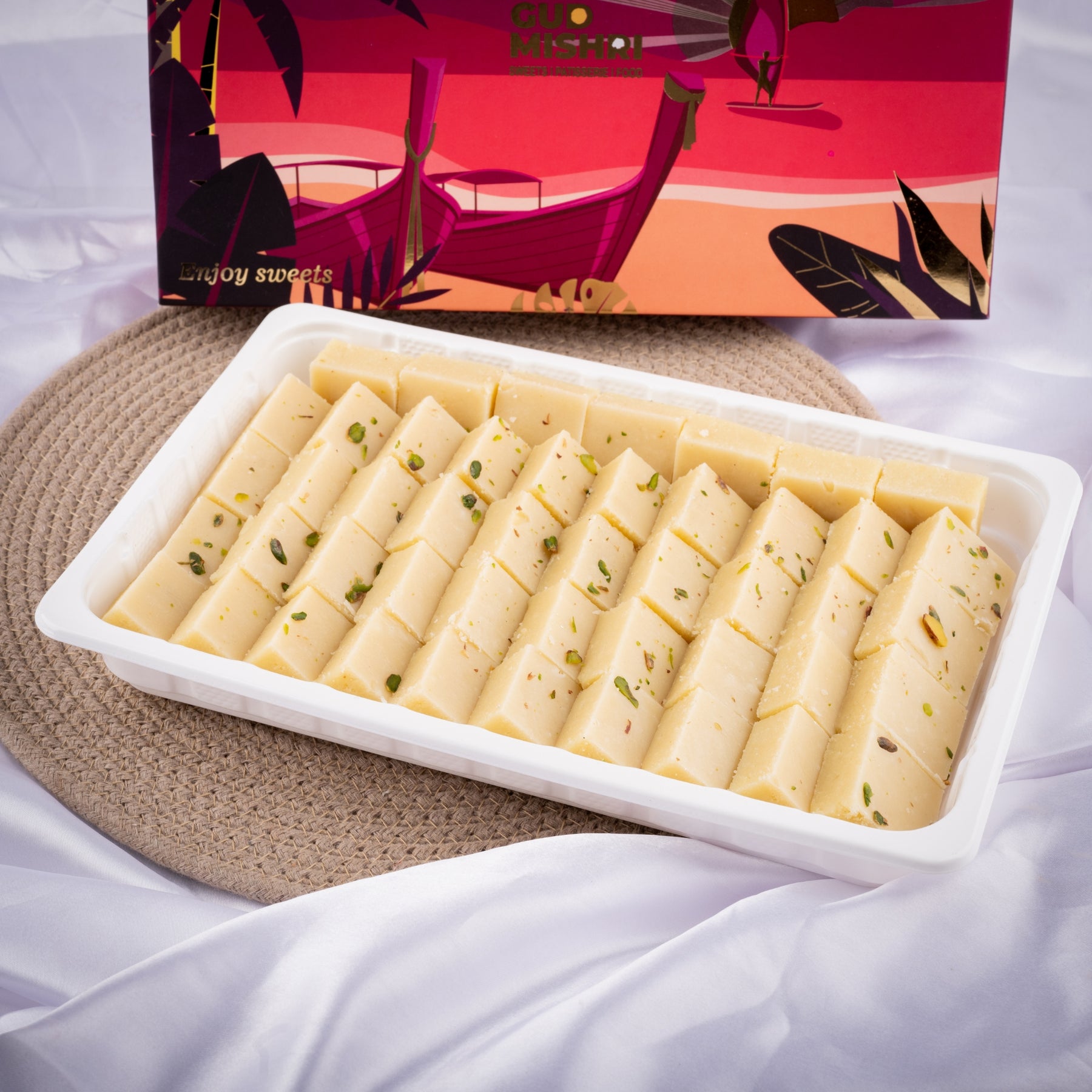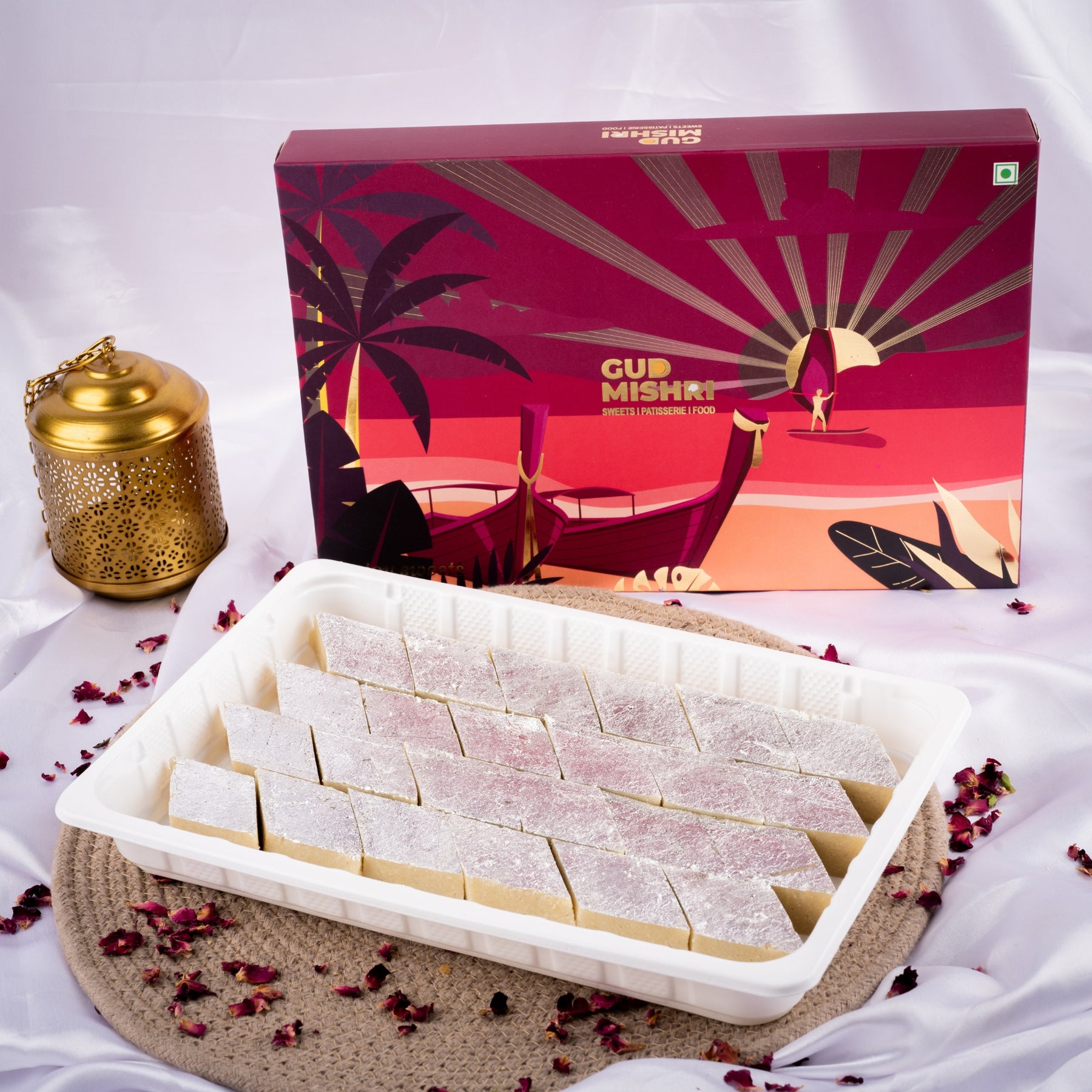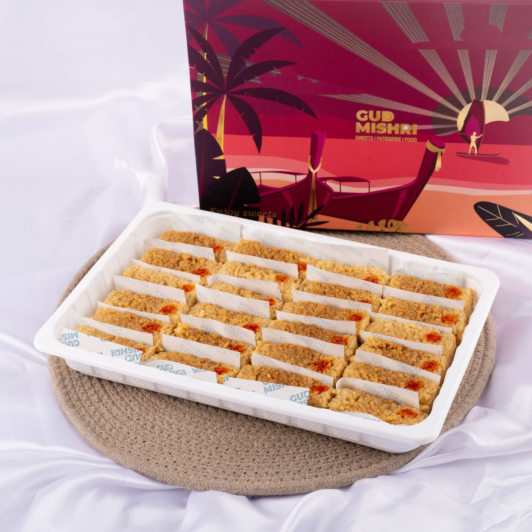 Gud Mishri’s Bikaneri Barfi brings the essence of traditional Indian sweets with a modern, healthier twist. Sweetened naturally with Mishri instead of refined sugar, this barfi offers a guilt-free indulgence that’s perfect for those seeking a wholesome treat. Made with premium ingredients and free from artificial food colors, it’s a pure and authentic delight in every bite. Ideal for gifting during festivals or special occasions, Gud Mishri’s Bikaneri Barfi combines the richness of Indian tradition with health-conscious choices. Enjoy the best of both worlds with this premium, delicious sweet!
