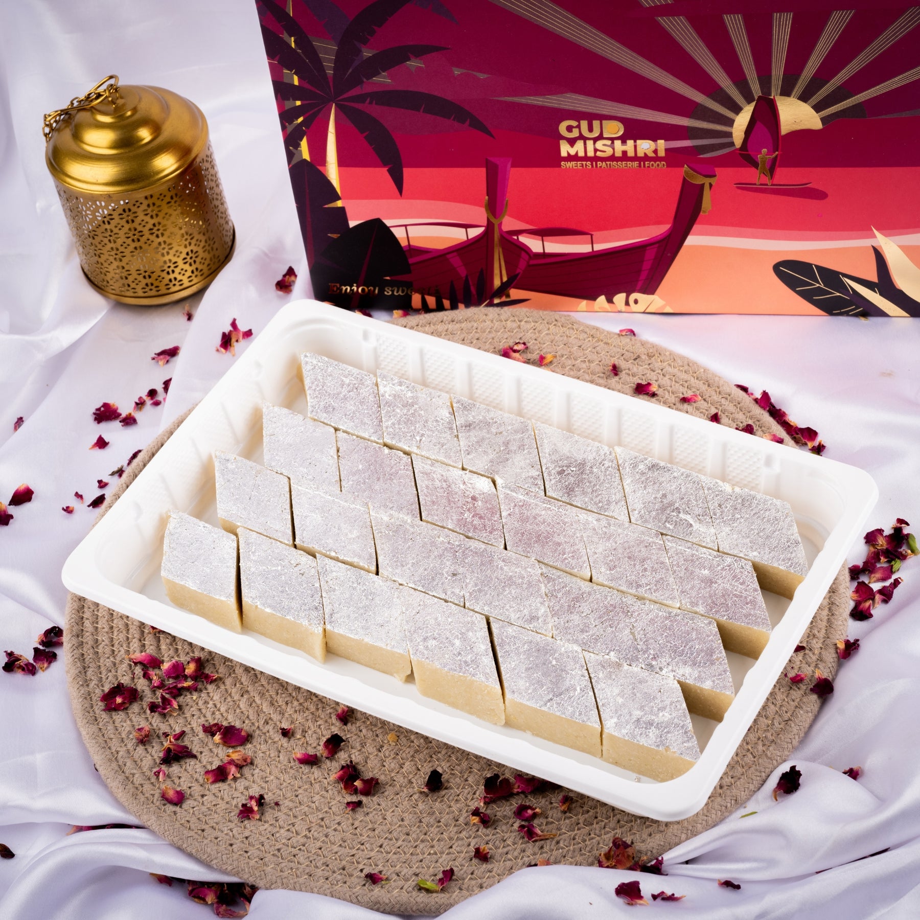 Gud Mishri’s Badam Katli is a delectable treat made with premium quality almonds, sweetened naturally with Mishri instead of refined sugar. Prepared with pure clarified butter (ghee) and milk, this traditional Indian sweet offers a rich, authentic taste without any artificial food colors. Each bite is a perfect balance of taste and nutrition, making it a guilt-free indulgence. Ideal for gifting during festivals or special occasions, Gud Mishri’s Badam Katli brings the best of Indian traditional sweets in a healthy, flavorful form. Savor the goodness of almonds and tradition, guilt-free!