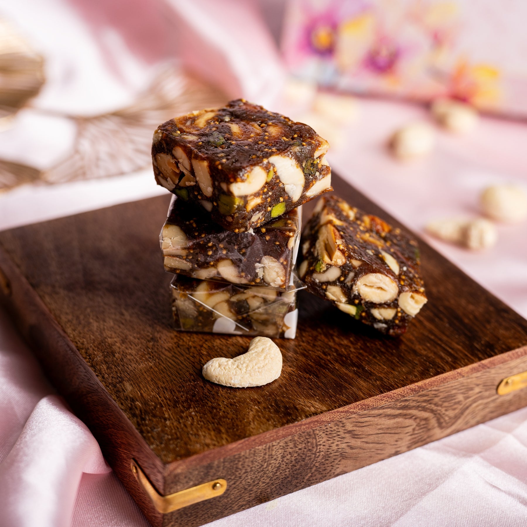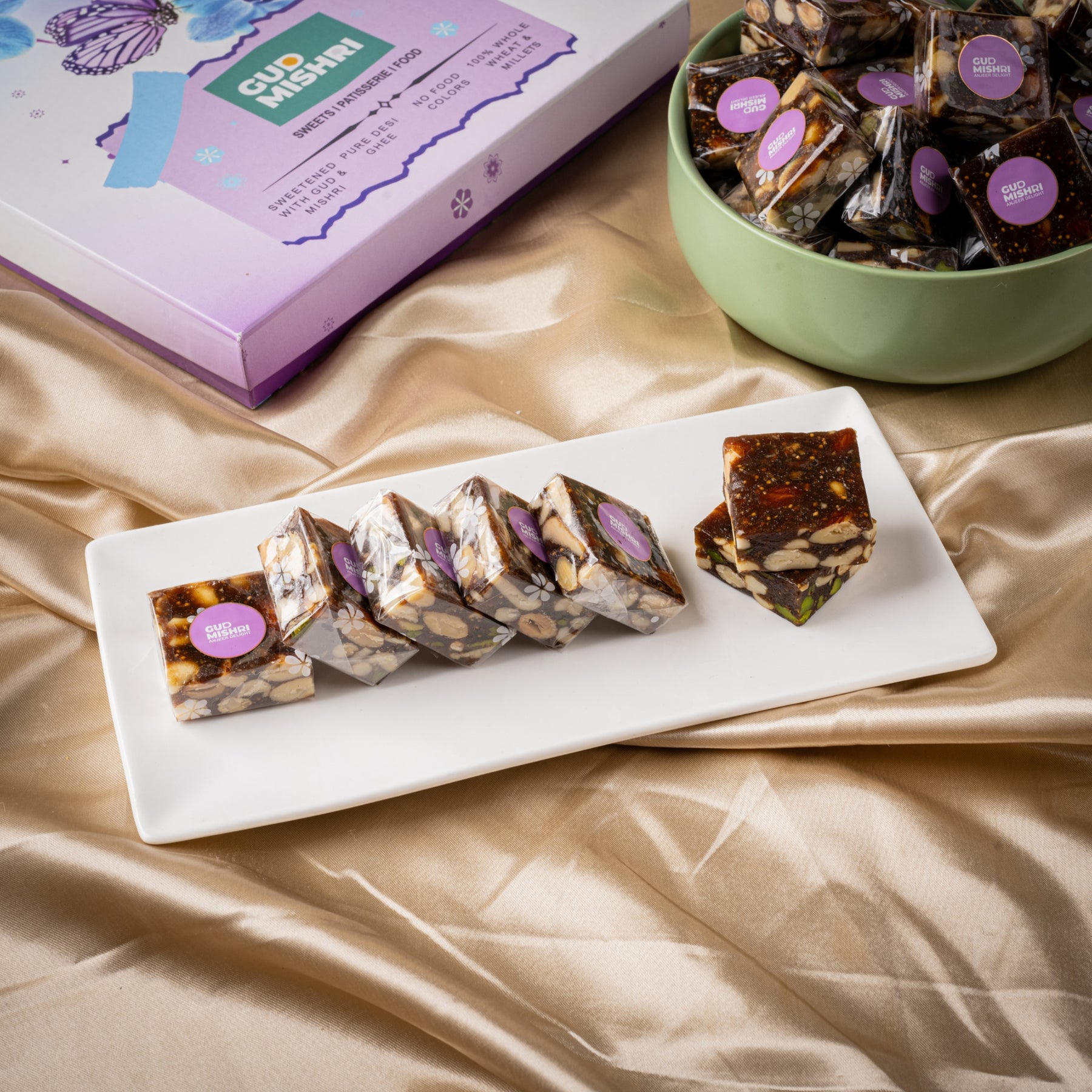 Gud Mishri’s Anjeer Delight is a wholesome and indulgent treat made with premium quality anjeer (figs), cashews, and pistachios, naturally sweetened with Mishri instead of refined sugar. Free from artificial food colors, this delightful sweet offers a perfect blend of health and flavor, capturing the true essence of Indian traditional sweets. Rich in nutrients, Anjeer Delight provides a guilt-free indulgence for those seeking a healthier alternative to traditional sweets. Perfect for gifting during festivals or special occasions, Gud Mishri’s Anjeer Delight is the ideal way to enjoy a wholesome and flavorful treat with a touch of tradition.