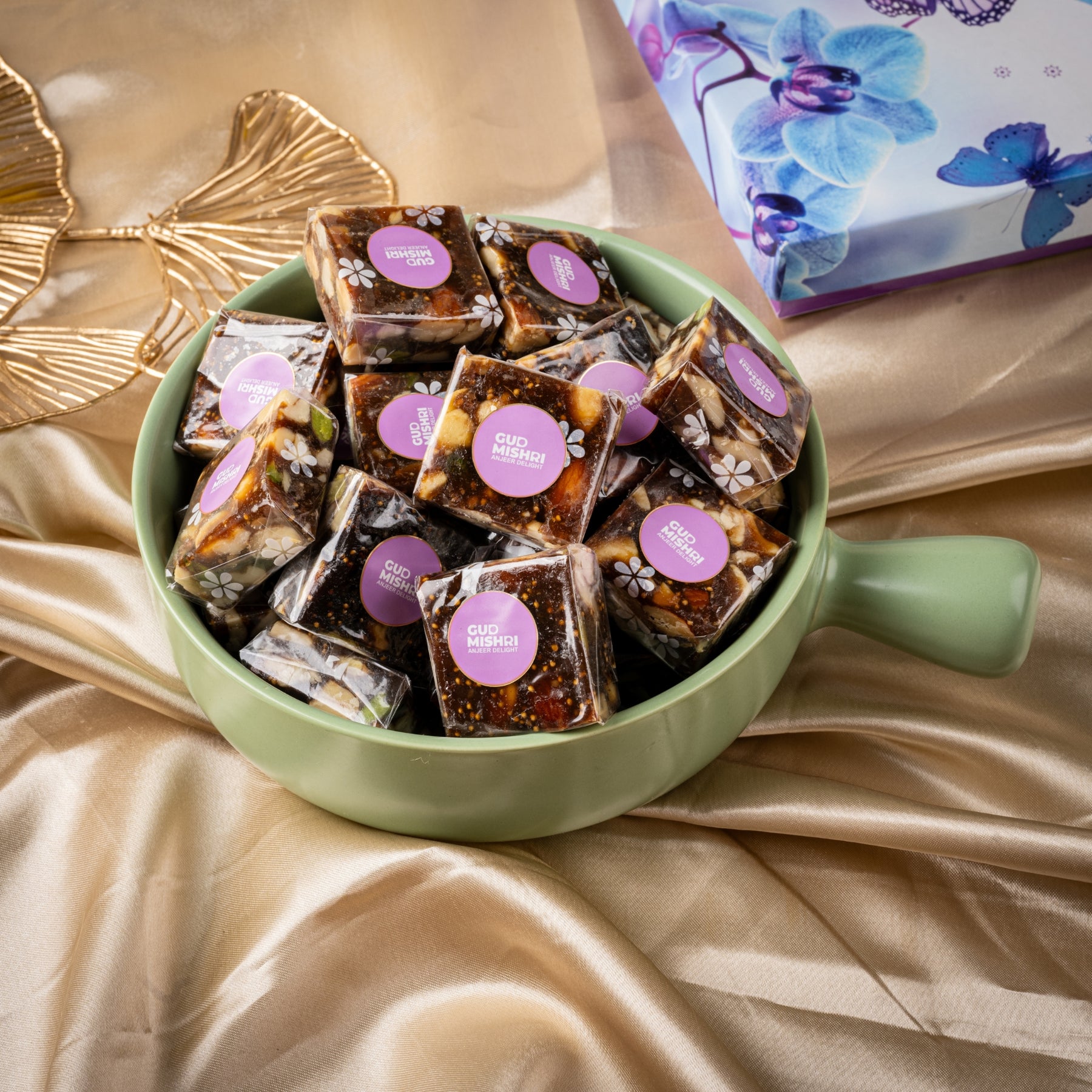 Gud Mishri’s Anjeer Exotica is a luxurious treat made with premium quality anjeer (figs), naturally sweetened with Mishri instead of refined sugar. Free from artificial food colors, this indulgent sweet offers the authentic taste of Indian traditional sweets with a healthier twist. Rich in nutrients, Anjeer Exotica combines the goodness of figs with the perfect balance of sweetness, making it an ideal choice for those seeking guilt-free indulgence. Perfect for gifting during festivals or special occasions, Gud Mishri’s Anjeer Exotica brings together health, flavor, and tradition in every bite.