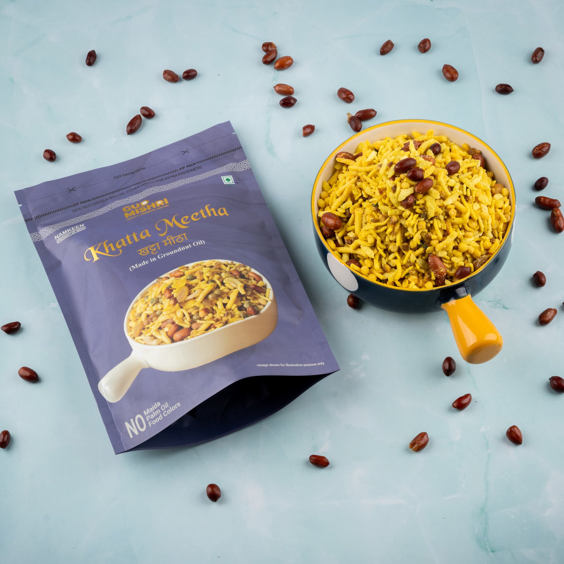 Prepared with groundnut oil, this healthy Khatta-Meetha Namkeen is free from palm oil, margarine, and artificial food colors, making it a healthier option for those mindful of their snack choices. Whether you're enjoying it during tea time or as a quick snack, it’s a perfect choice for a guilt-free treat.
