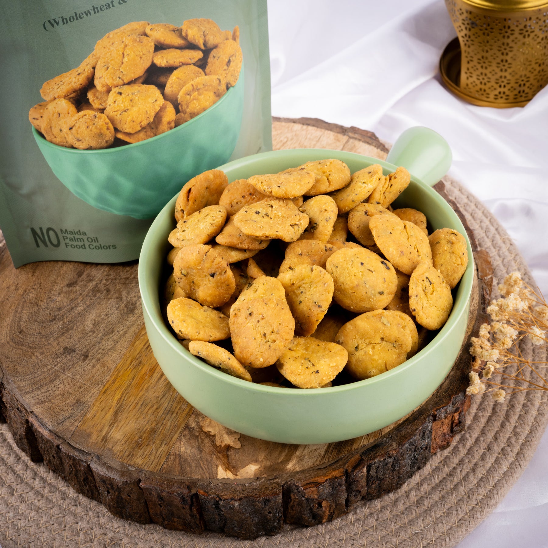 Perfect for anyone seeking healthy snacks, these healthy mathri are a guilt-free indulgence. With no added preservatives, they are ideal for a light snack or as a healthy tea time snack. Whether you're relaxing with a cup of tea or enjoying them on-the-go, these no palm oil biscuits are the perfect balance of flavour and nutrition.